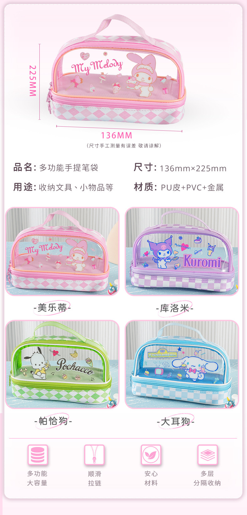 【Joytop悦木】三麗鷗的心动派对-多功能手提筆袋 学生 儿童專用筆袋 筆盒 送禮