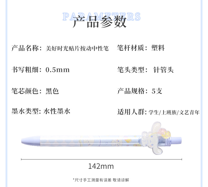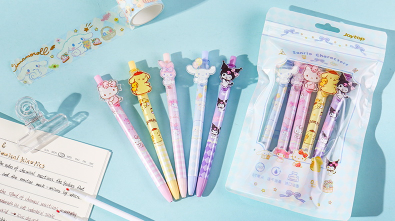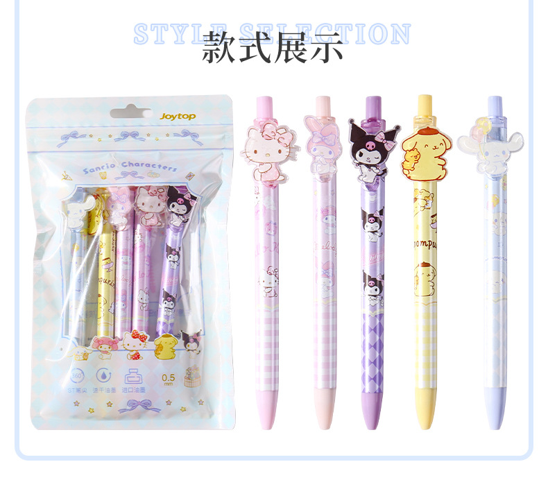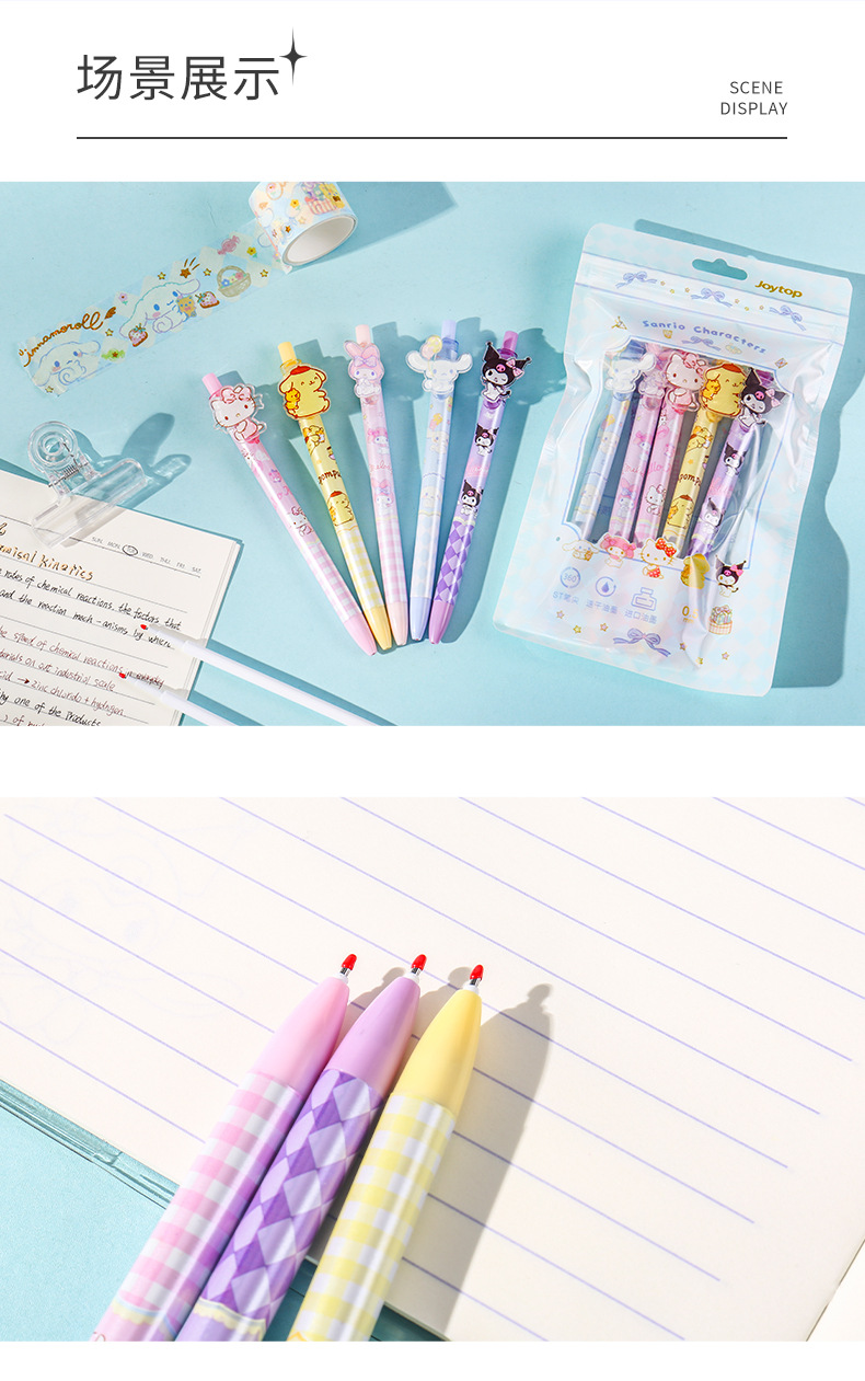【Joytop悦木】三麗鷗 贴片按动中性筆5支混装(针管头手帐筆芯)送禮
