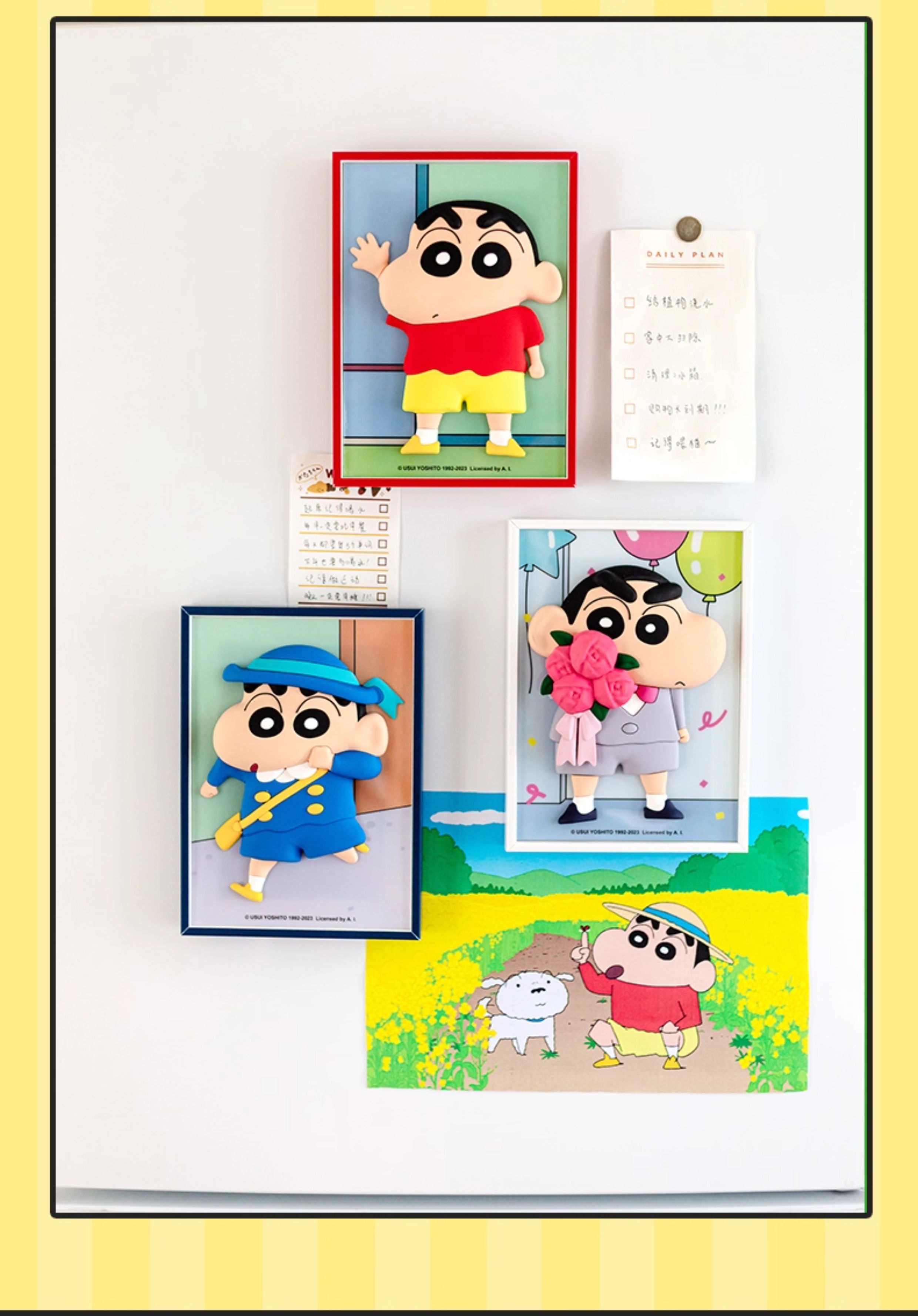 【樂融融】正版 蠟筆小新 3d立体相框 网红冰箱貼 装飾磁貼 卡通可爱擺件 送禮