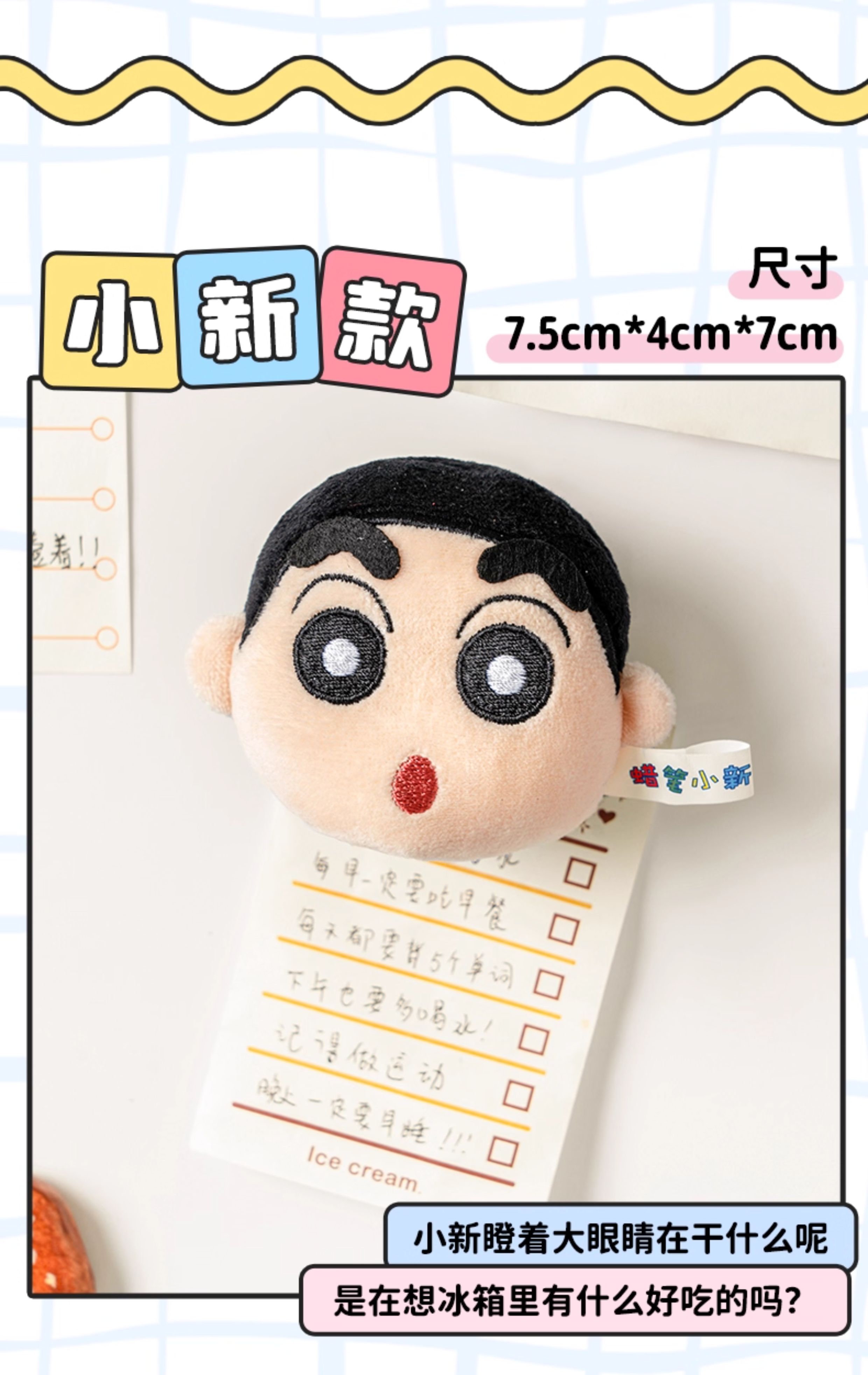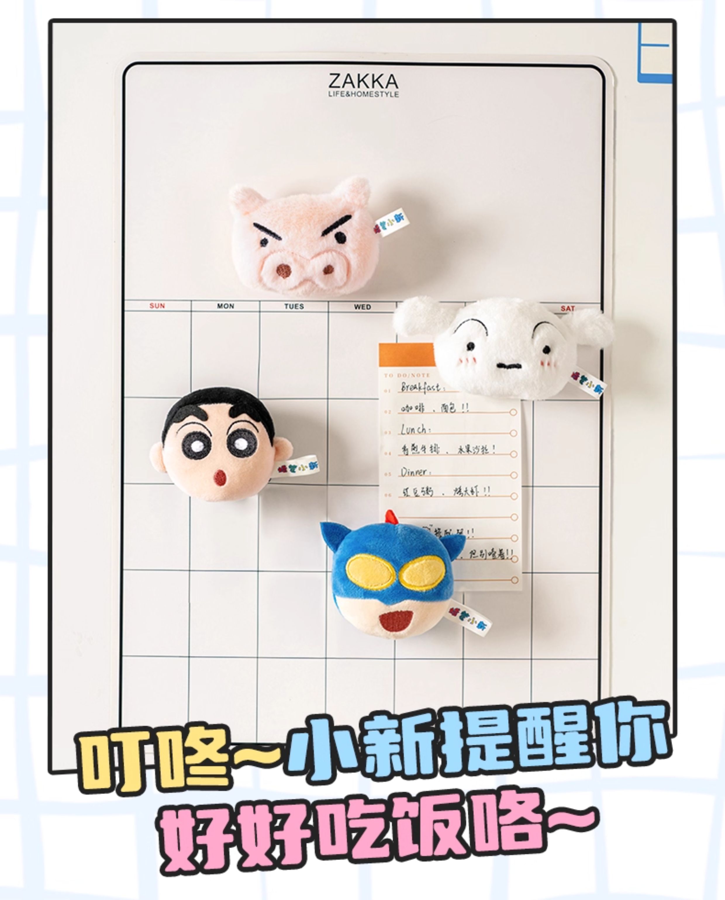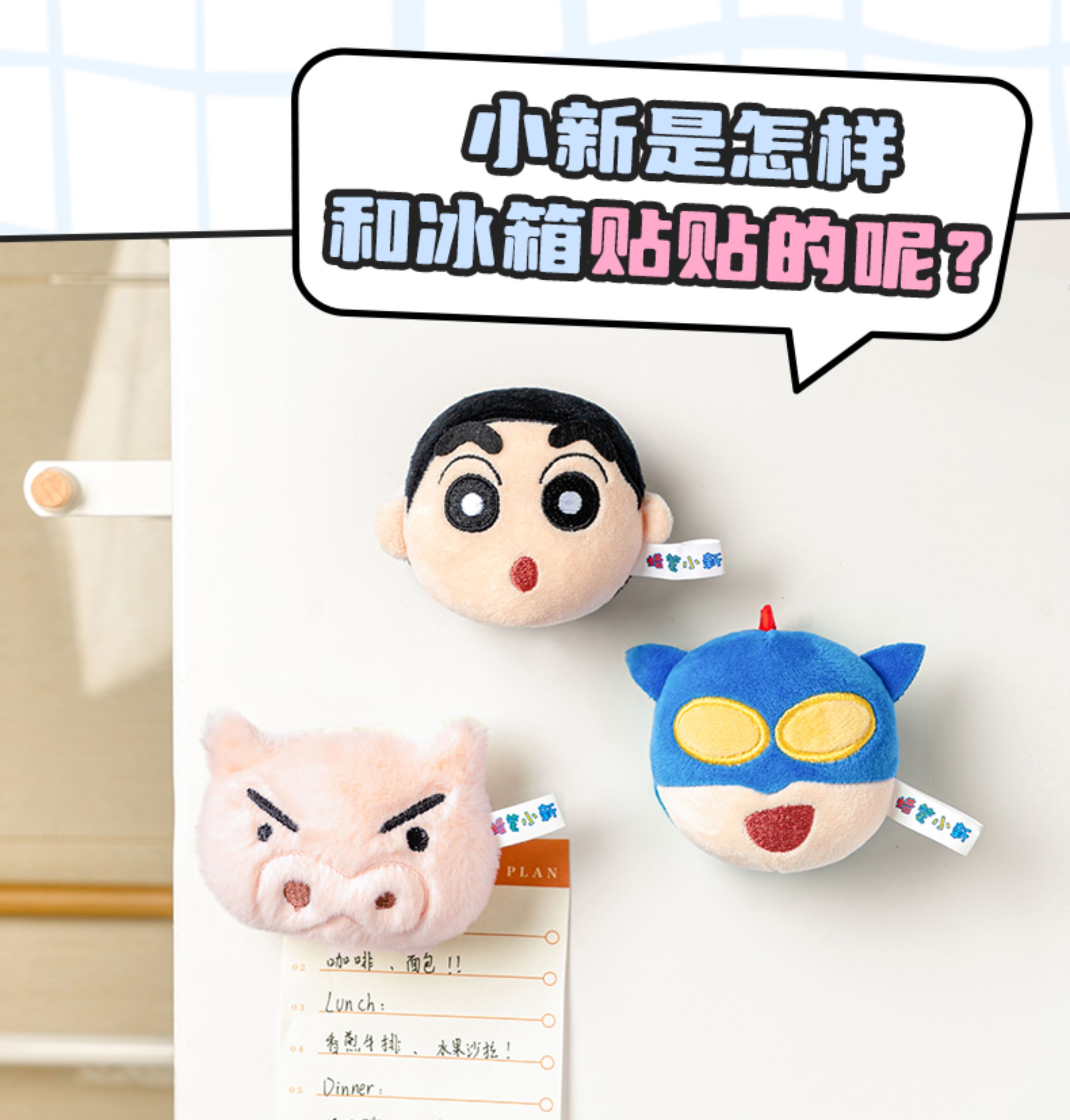 【漫貓】正版 蠟筆小新 毛绒磁吸冰箱貼 可爱公仔裝飾品 左卫门卡通家居擺件 送禮