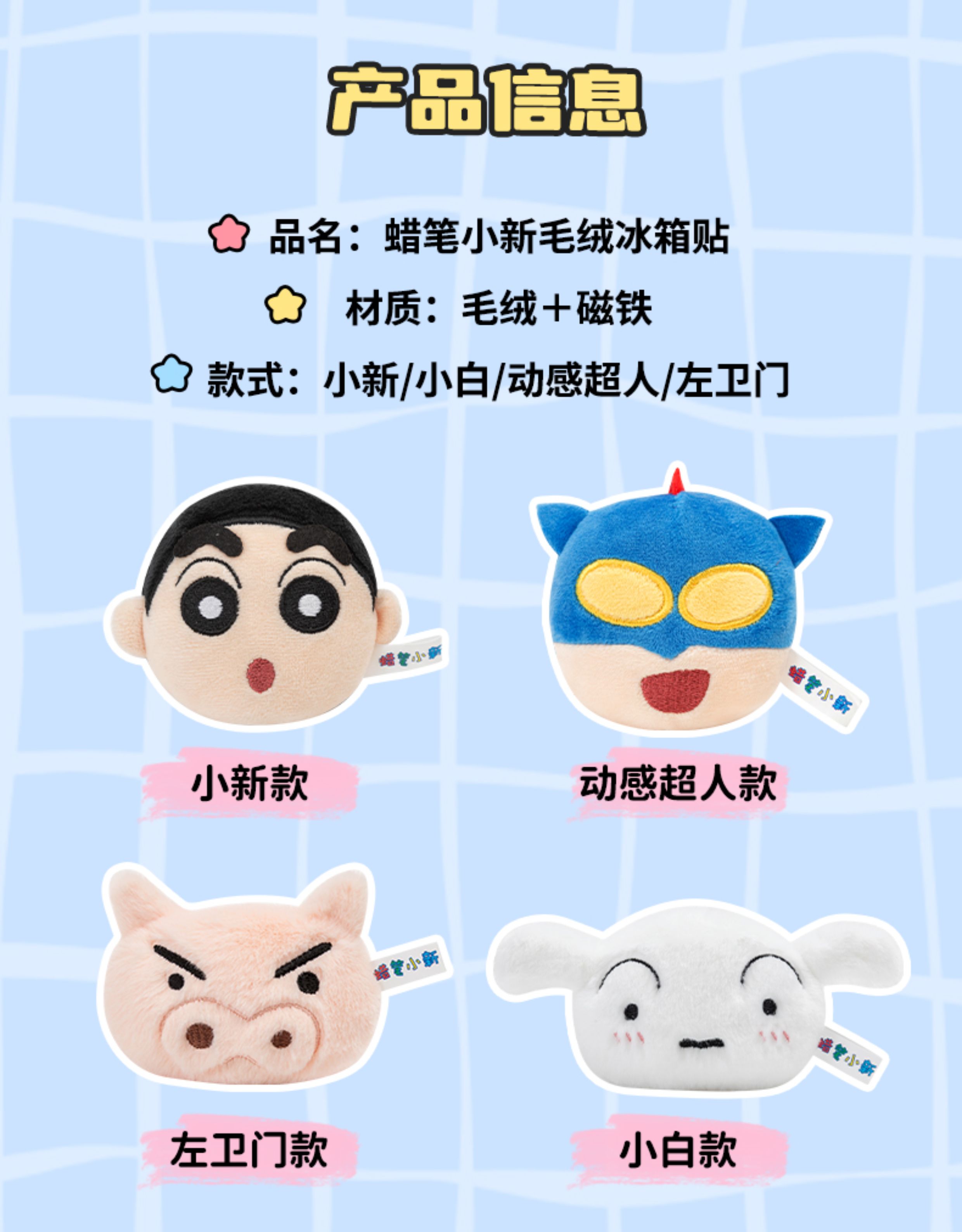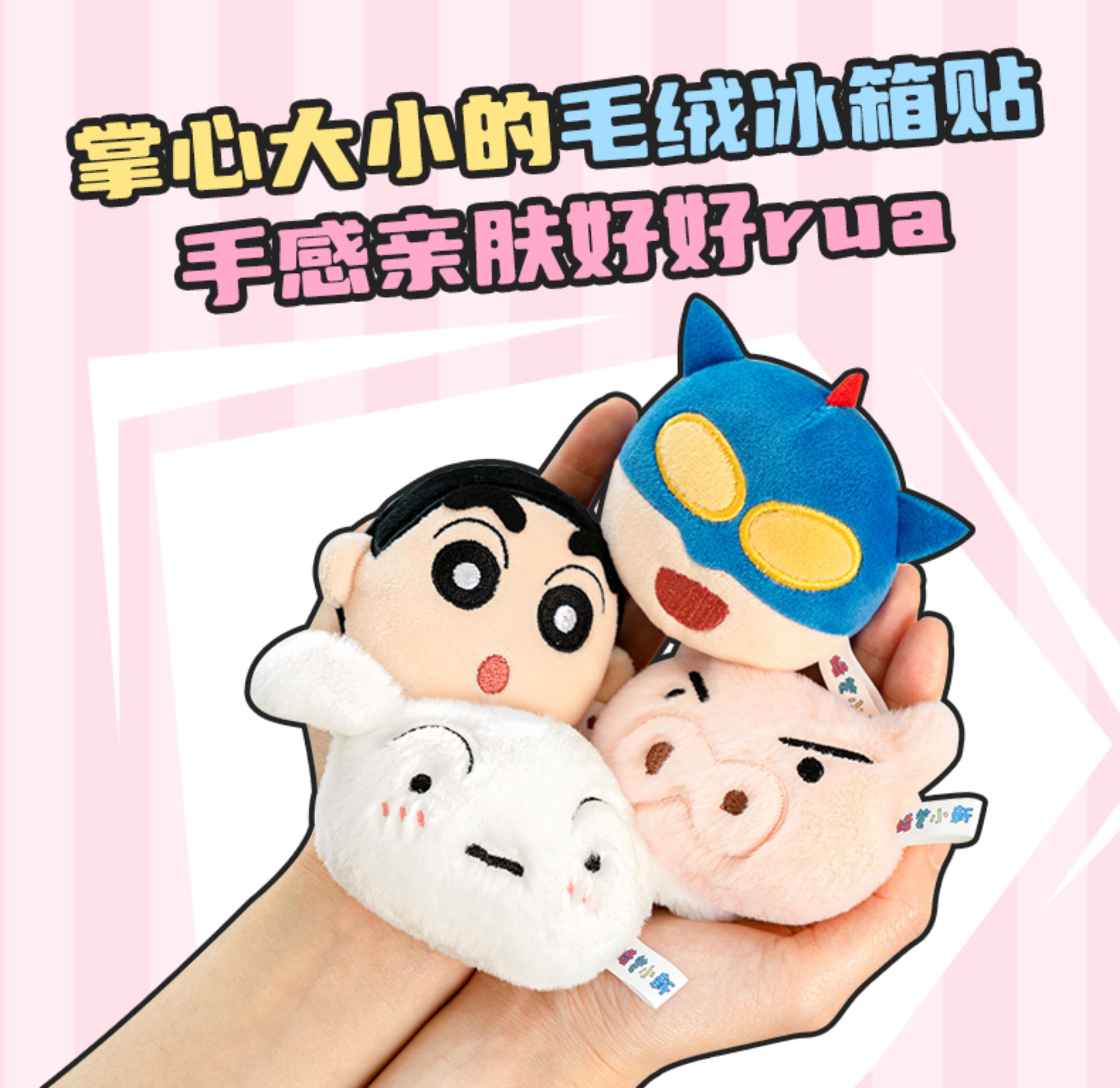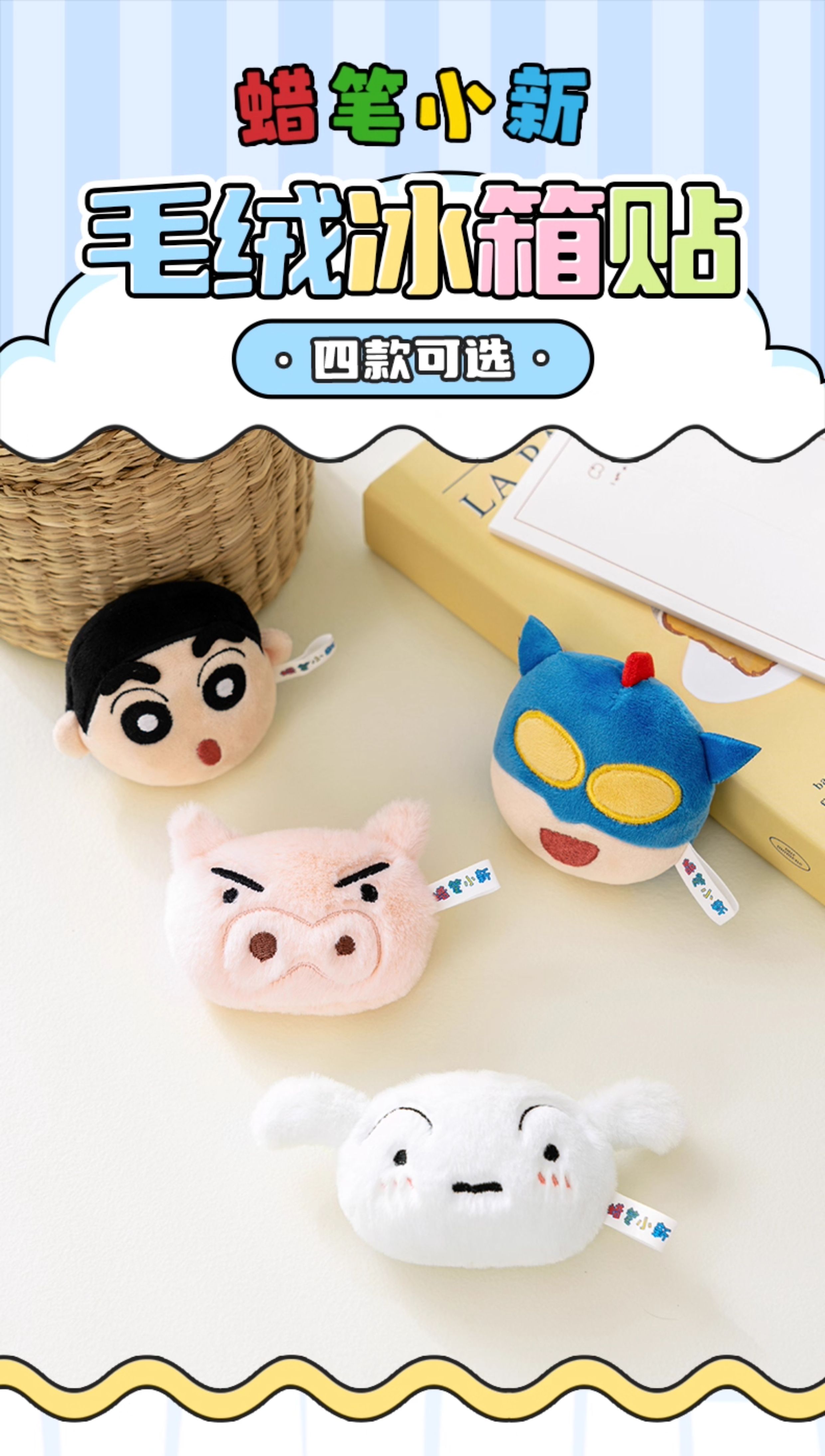 【漫貓】正版 蠟筆小新 毛绒磁吸冰箱貼 可爱公仔裝飾品 左卫门卡通家居擺件 送禮