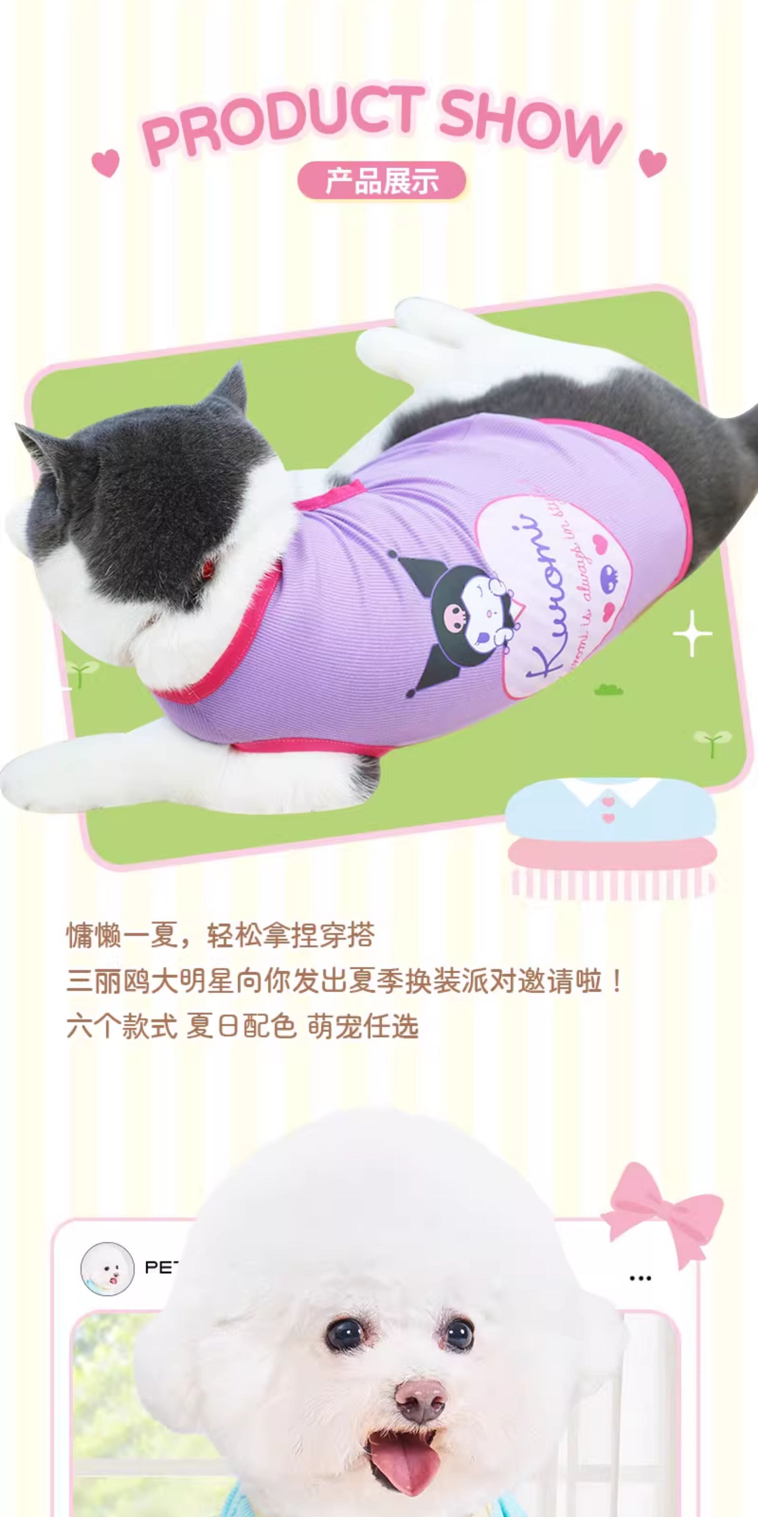 【覓嗷】正版 三麗鷗 寵物貓咪狗狗衣服 凉凉狗衣 夏季新款清凉背心小型犬 送禮