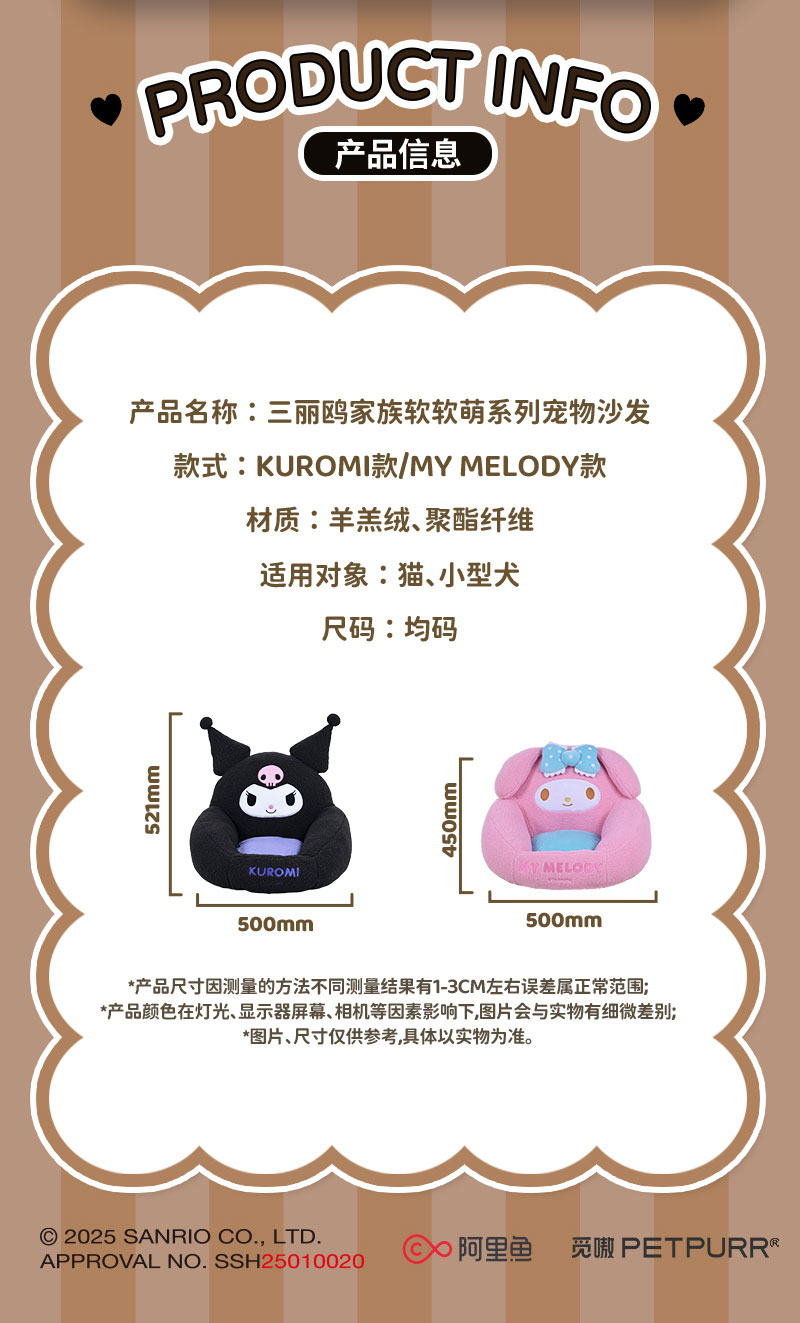 【覓嗷】正版 三麗鷗 库洛米沙發貓窝 美樂蒂狗窝 寵物沙發四季通用小型犬 送禮