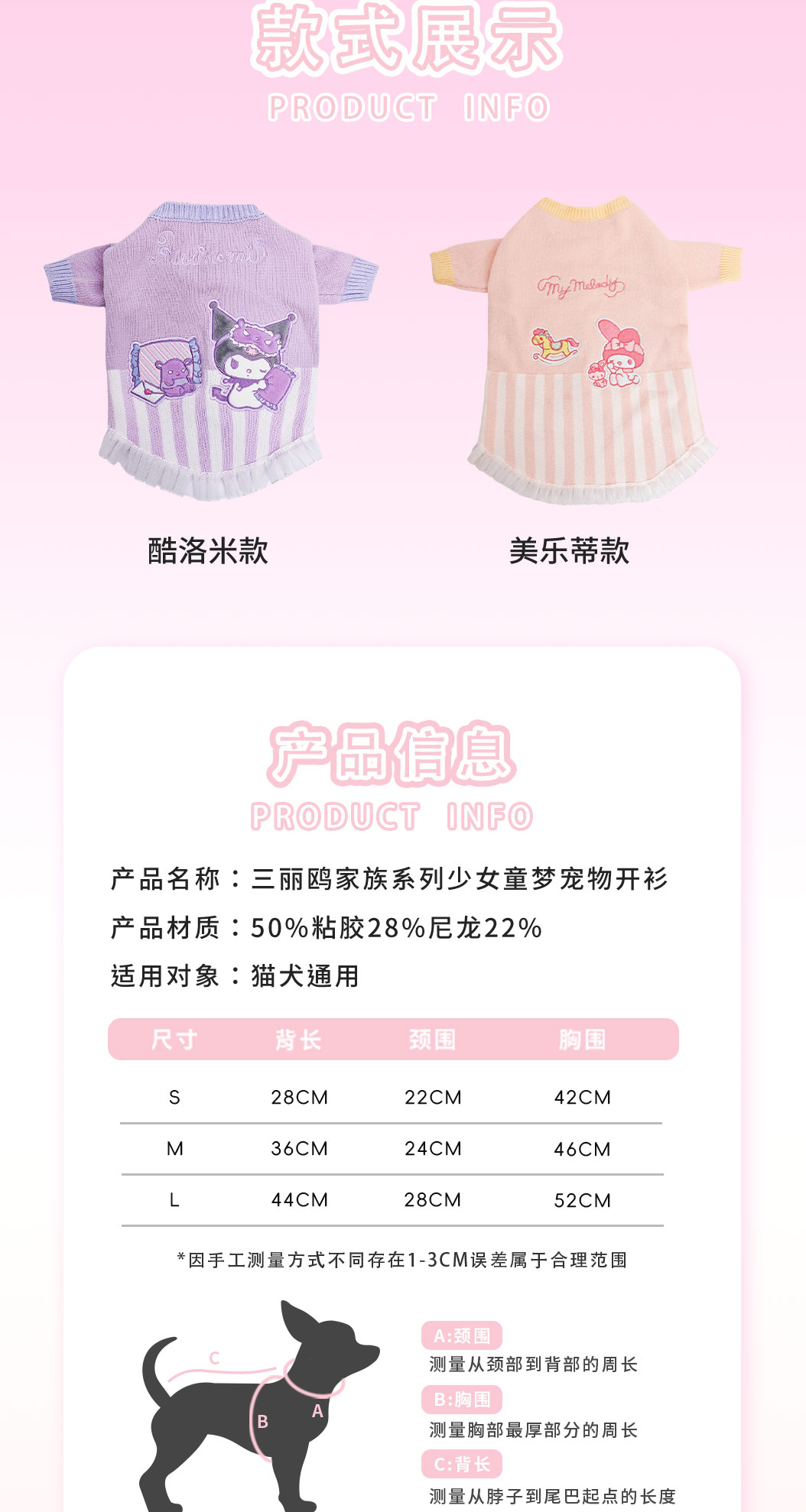 【覓嗷】正版 三麗鷗 童夢小狗狗衣服秋冬款 比熊泰迪博美貓咪小型犬毛衣 送禮