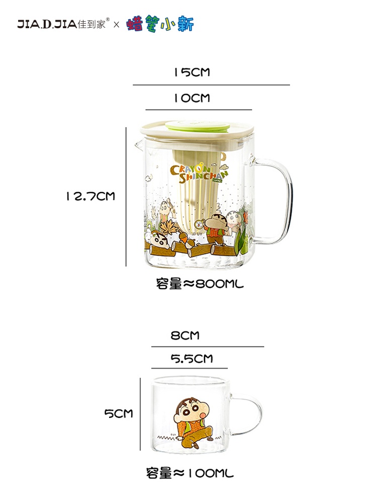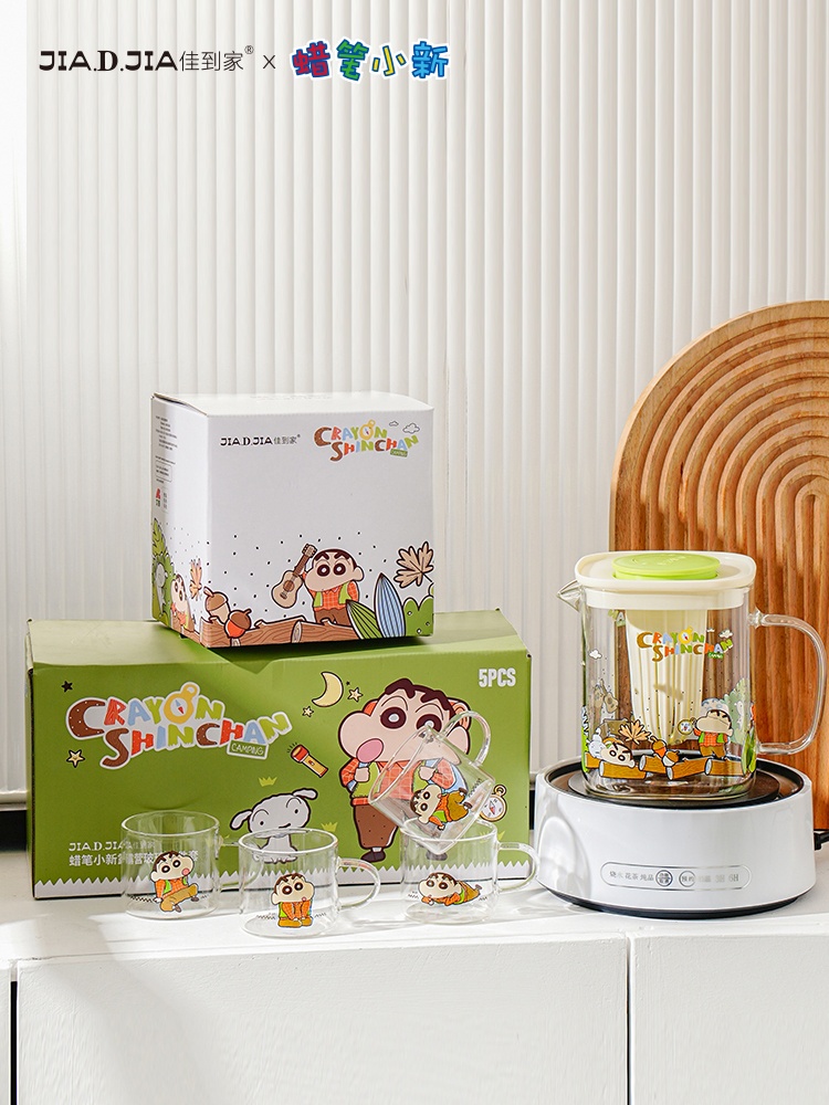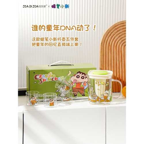 【現貨】正版 蠟筆小新 玻璃杯 茶杯 茶壺 茶具 4茶杯+1茶壺套裝 玻璃材質 高溫耐煮 送禮 新之助