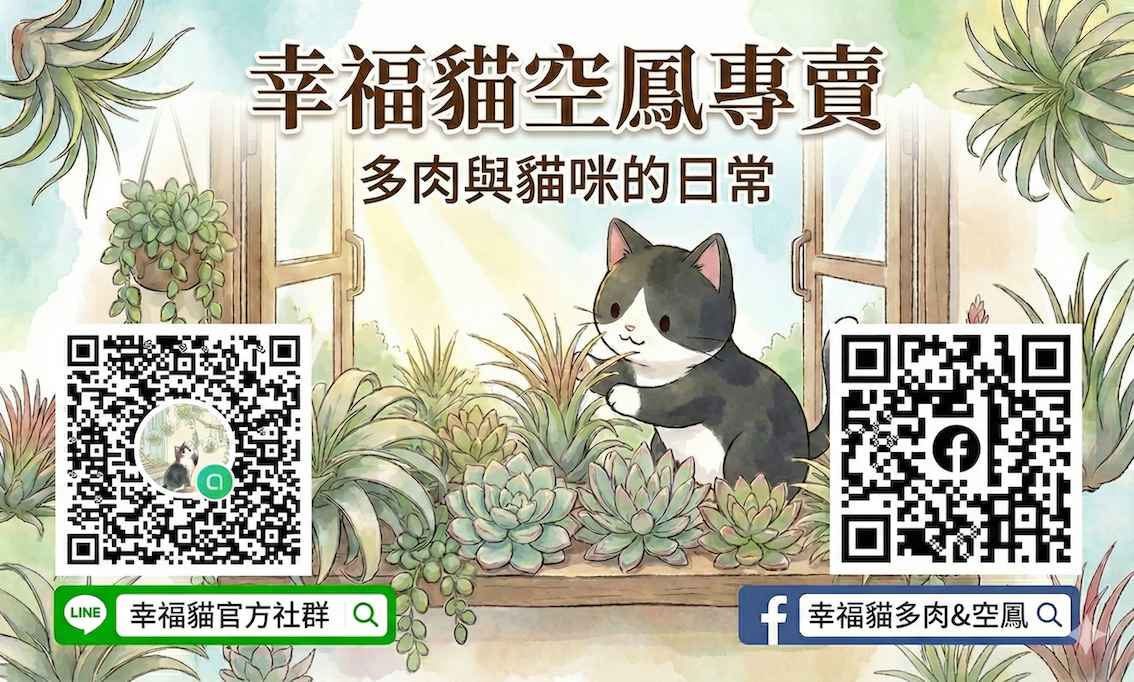 <h3><b>加入我們的綠色社群</b></h3><p>如果您也喜愛植物,歡迎追蹤我們,掌握最新的植株上架資訊與養護小撇步:</p><ul><li><p><b>Facebook 粉絲專頁</b>:幸福貓多肉 &amp&#59; 空鳳</p></li><li><p><b>LINE 交流社群</b>:空氣鳳梨(幸福貓)</p></li></ul>