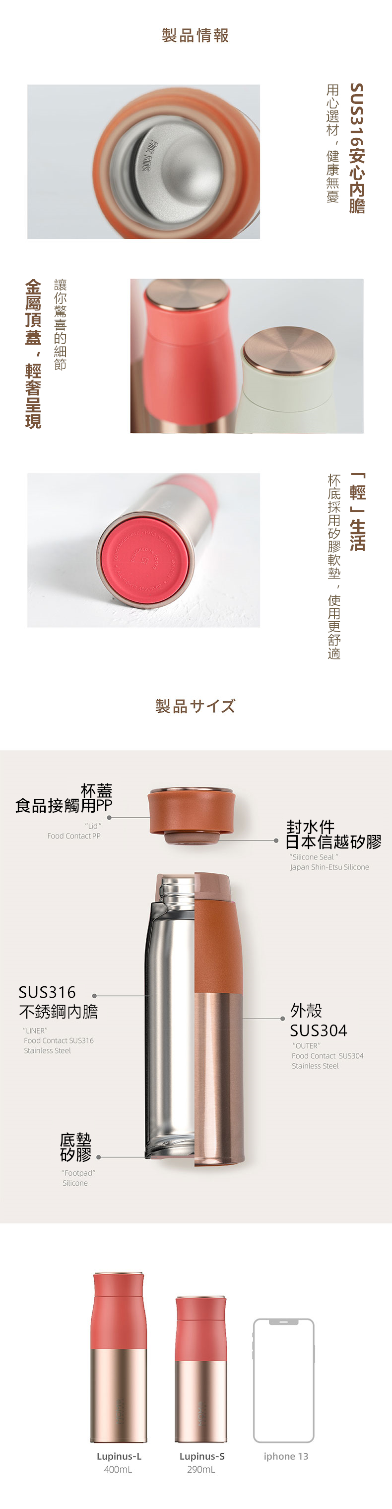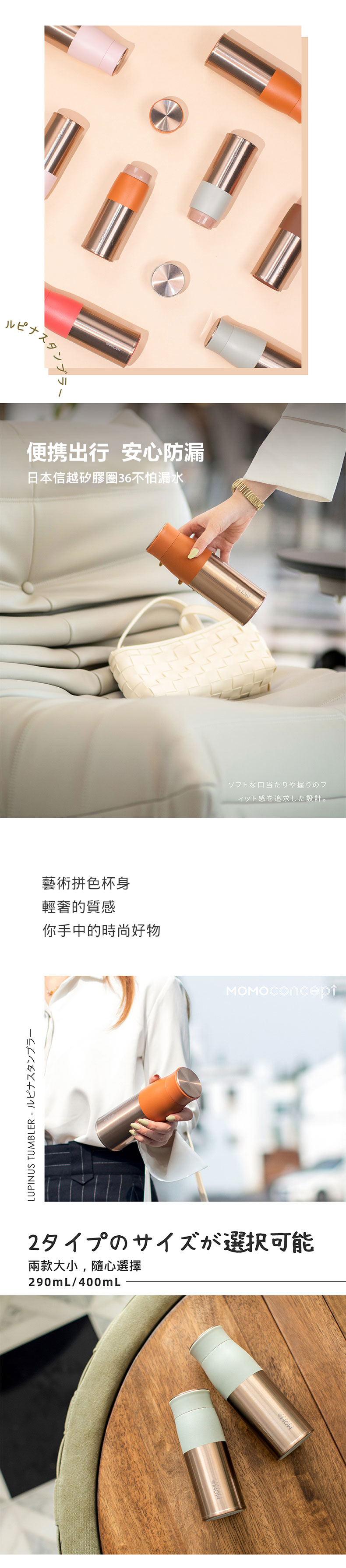 momoconcept Lupinus露貝思 不鏽鋼玫瑰金保溫杯 290mL