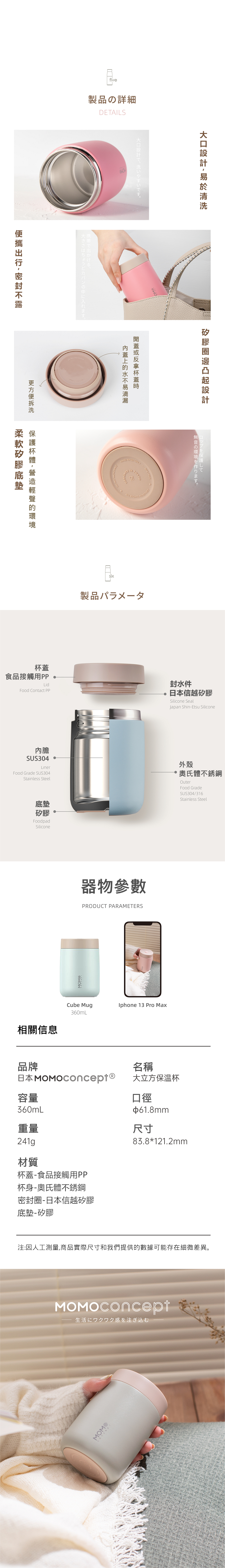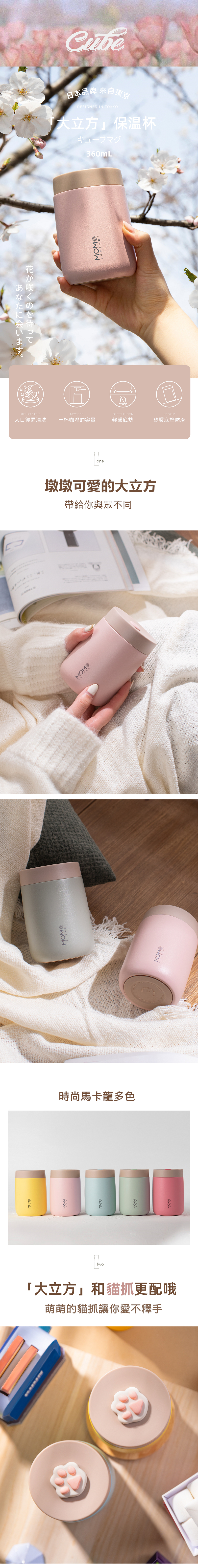 momoconcept Cube 立方夏日馬卡龍保溫杯360mL(粉/紅/藍/黃/綠)