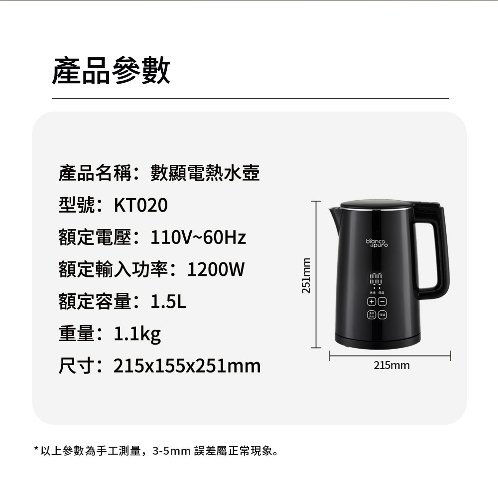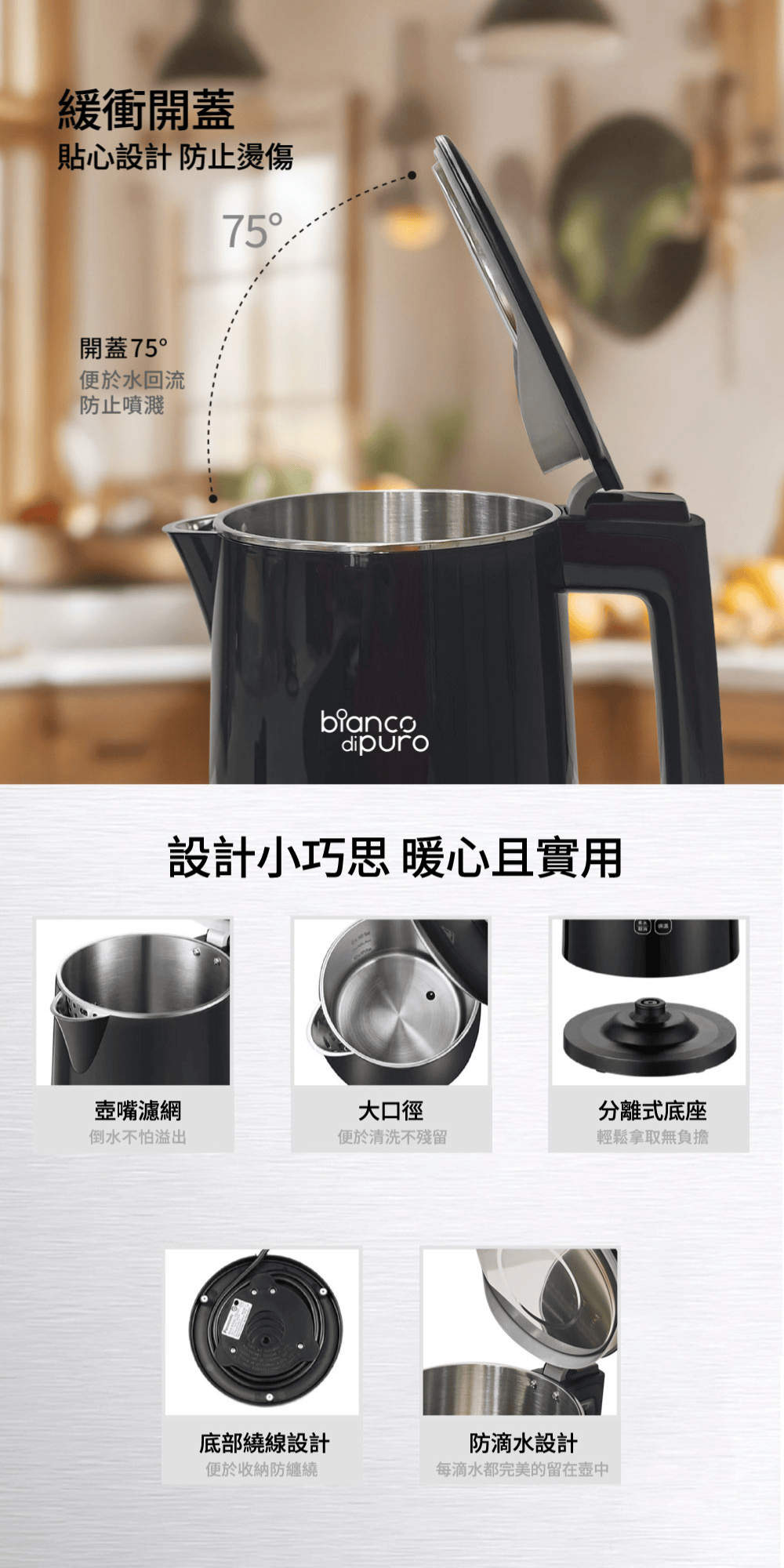 德國 Bianco di puro 彼安特 Bianco BOLLITORE數顯電熱水壺 不鏽鋼快煮壺 熱水瓶 電茶壺