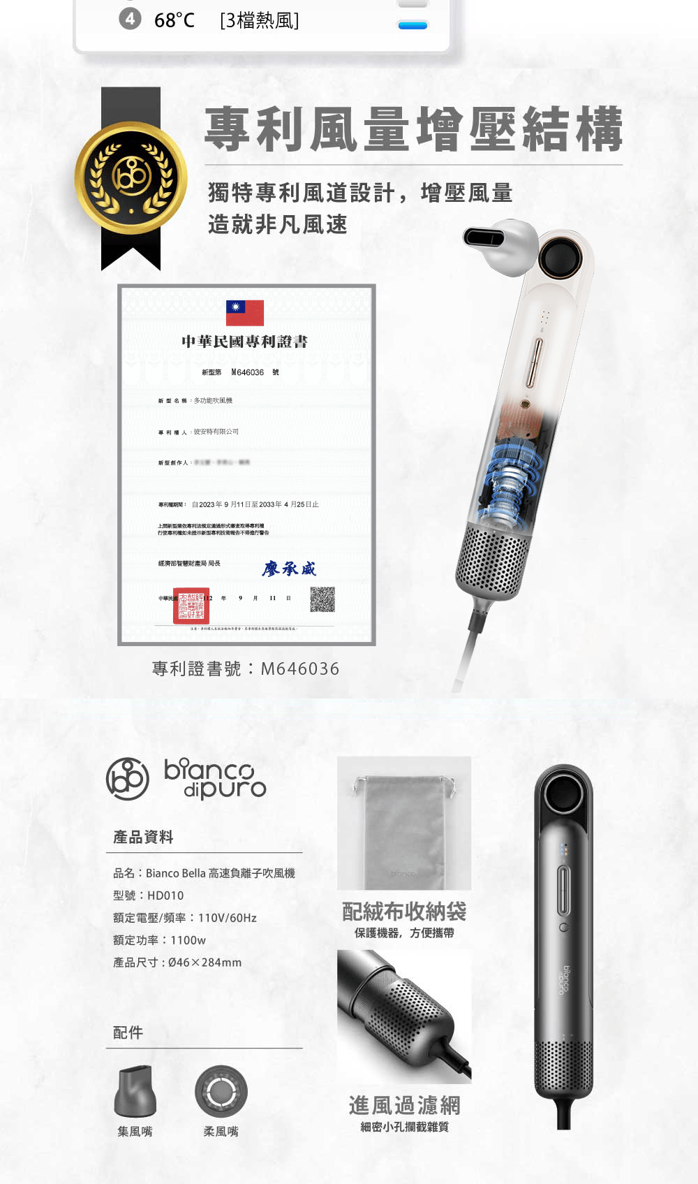 德國 Bianco di puro 彼安特 Bianco吹風機 Bella 高速負離子輕量吹風機
