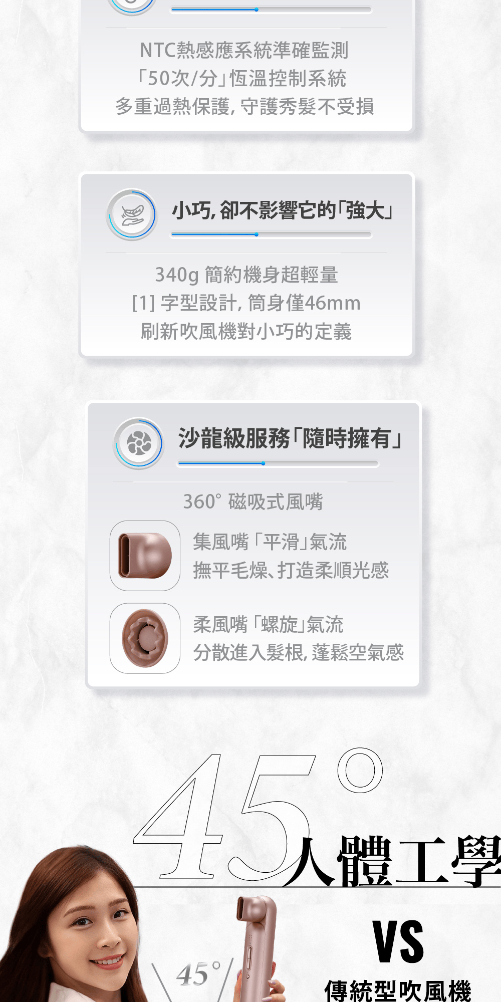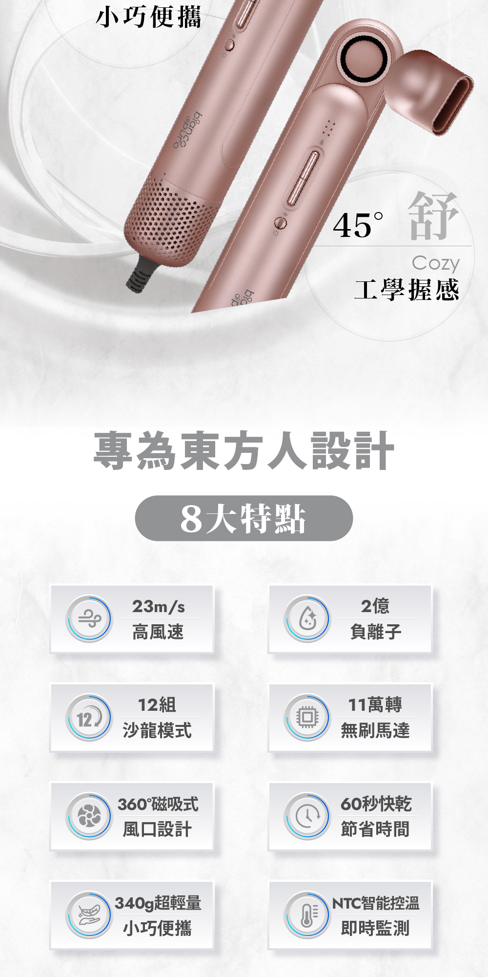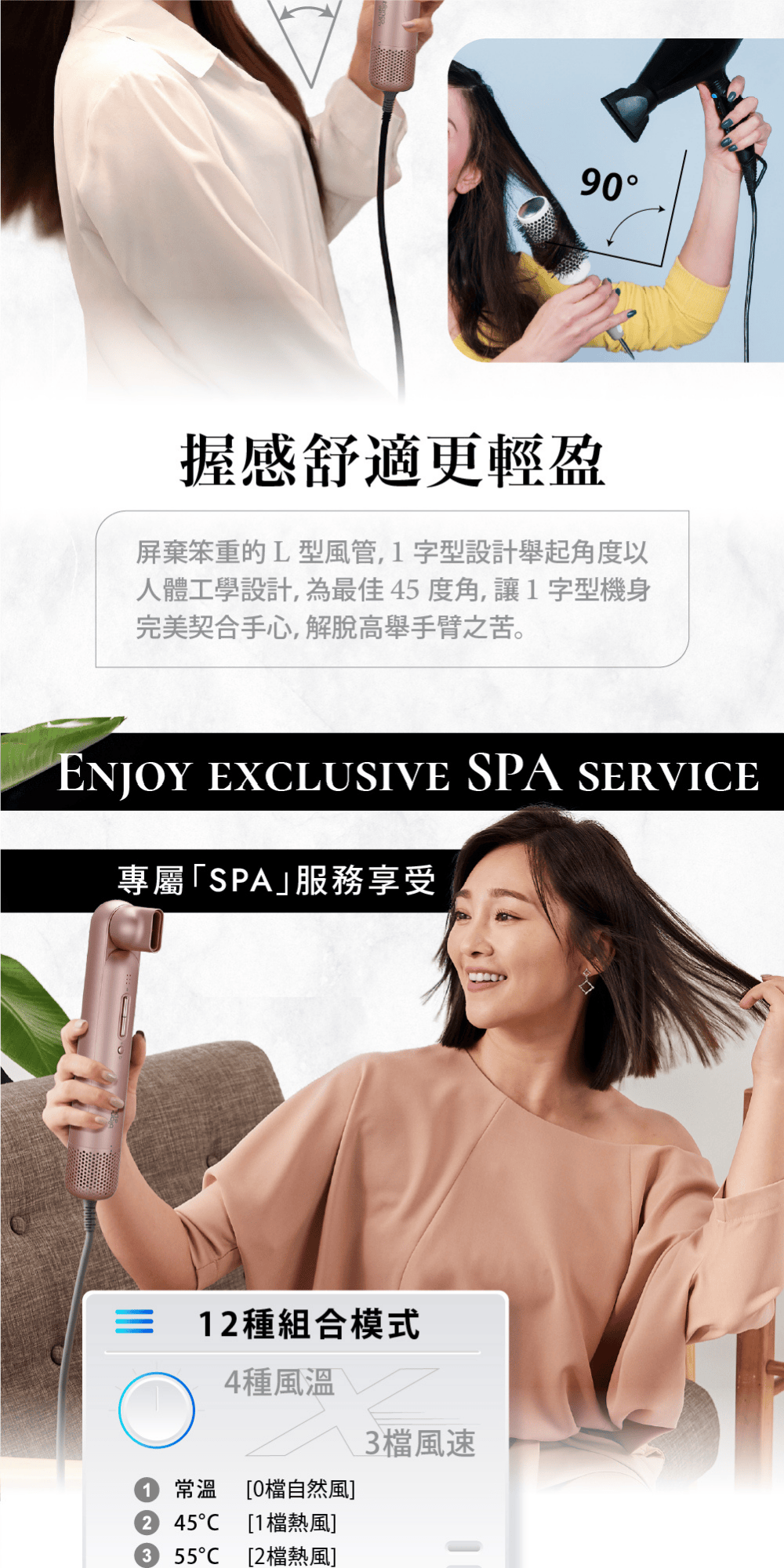 • 12 種吹風組合模式