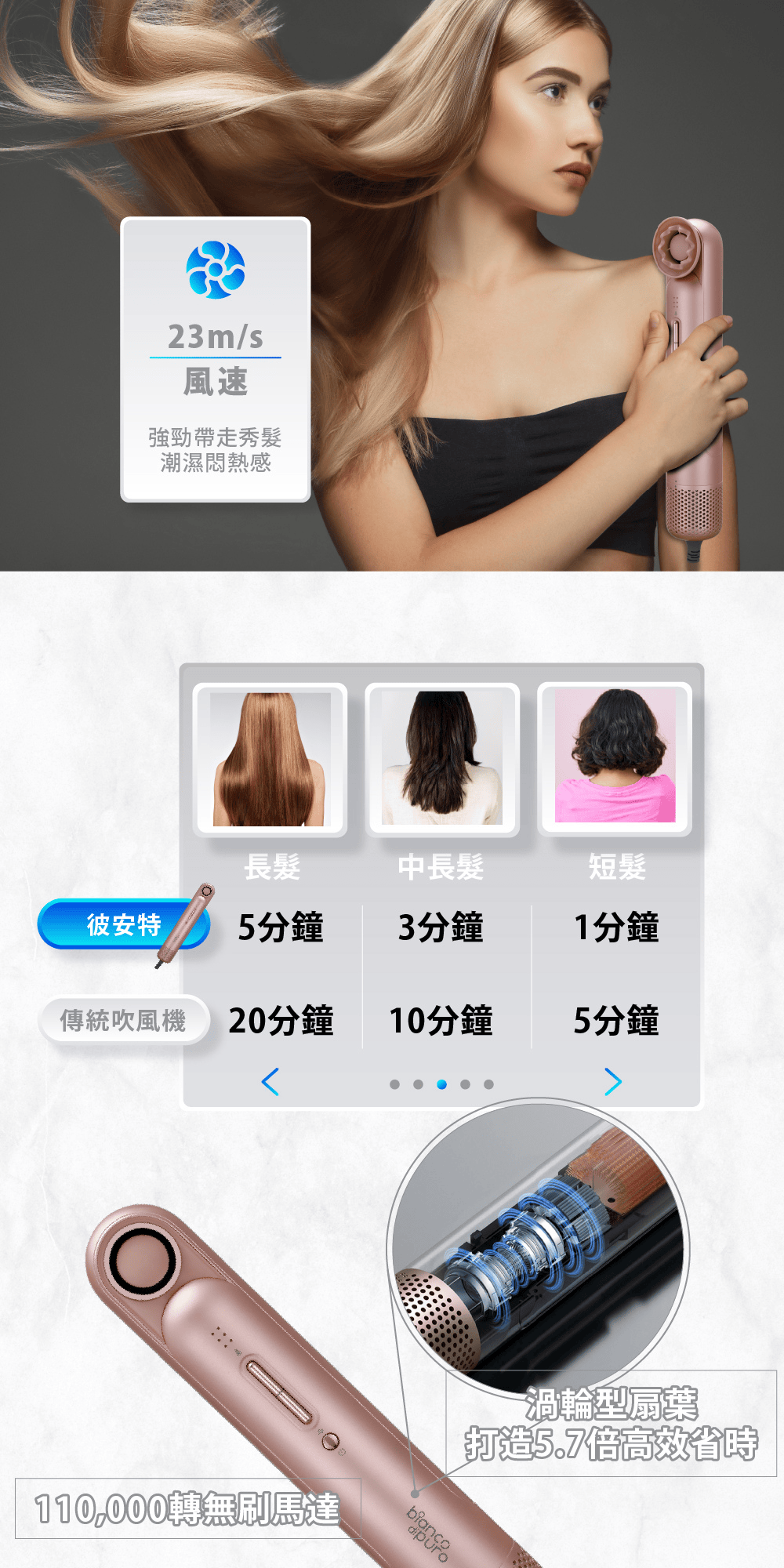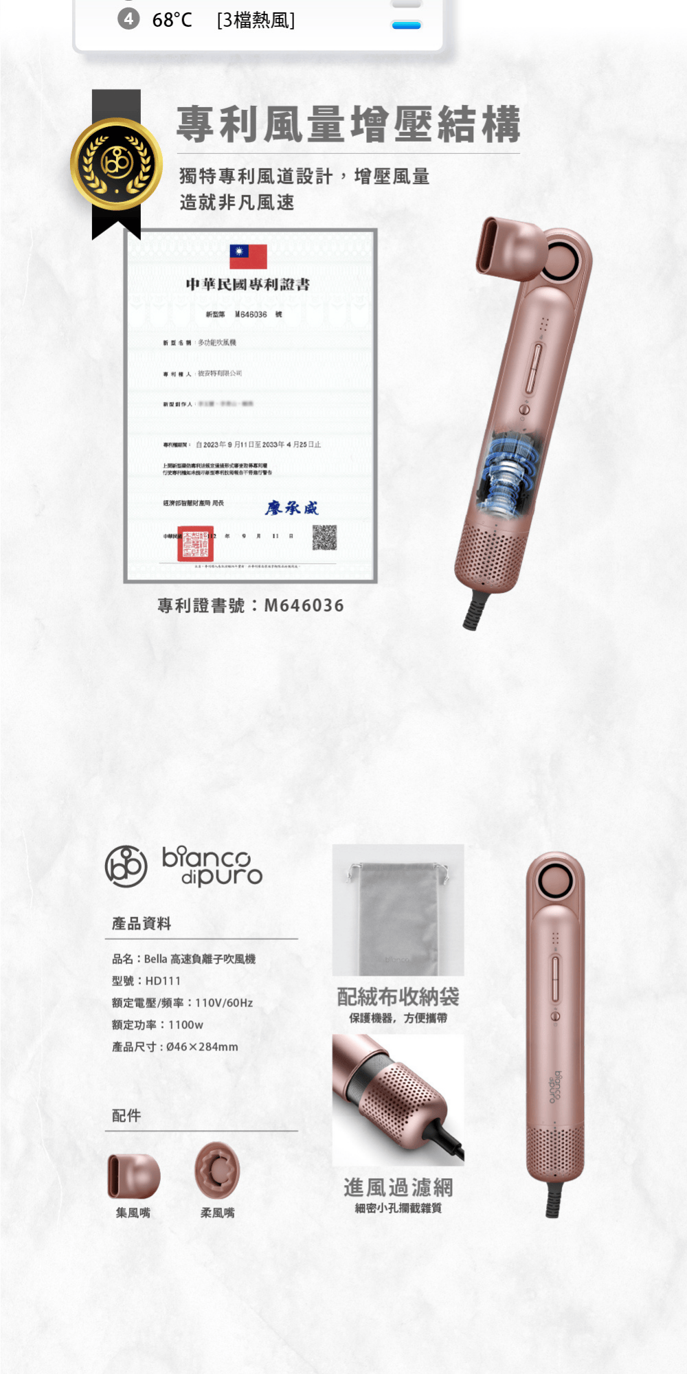 德國 Bianco 吹風機 Bianco di puro 彼安特 Bella 輕巧高速負離子吹風機