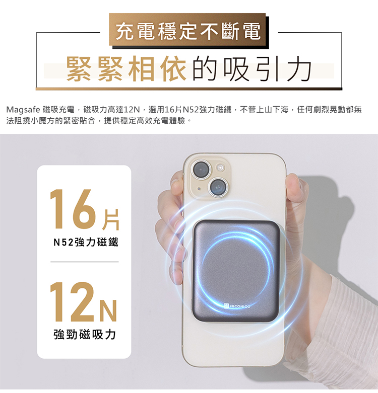 穩固磁吸充電,不會輕易脫落