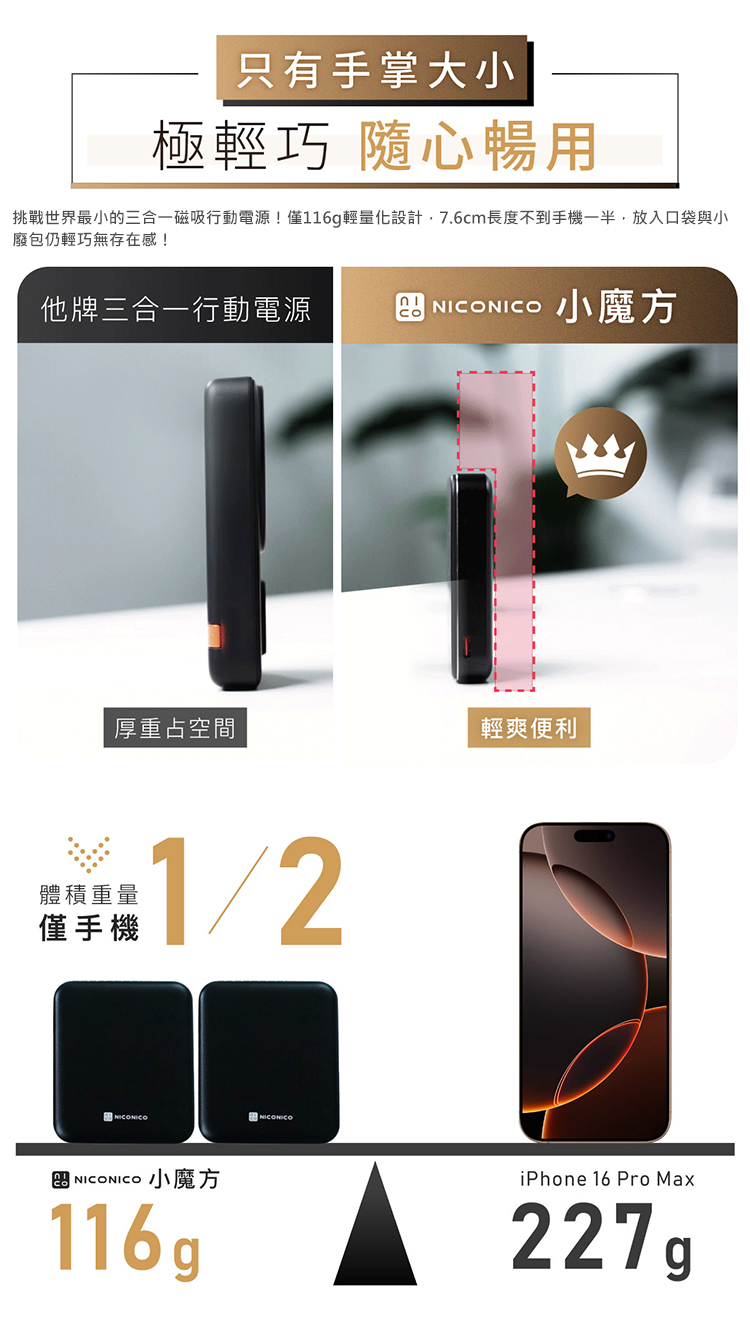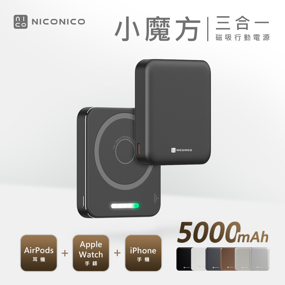日本 NICONICO 小魔方三合一磁吸行動電源5000mAh POT-569