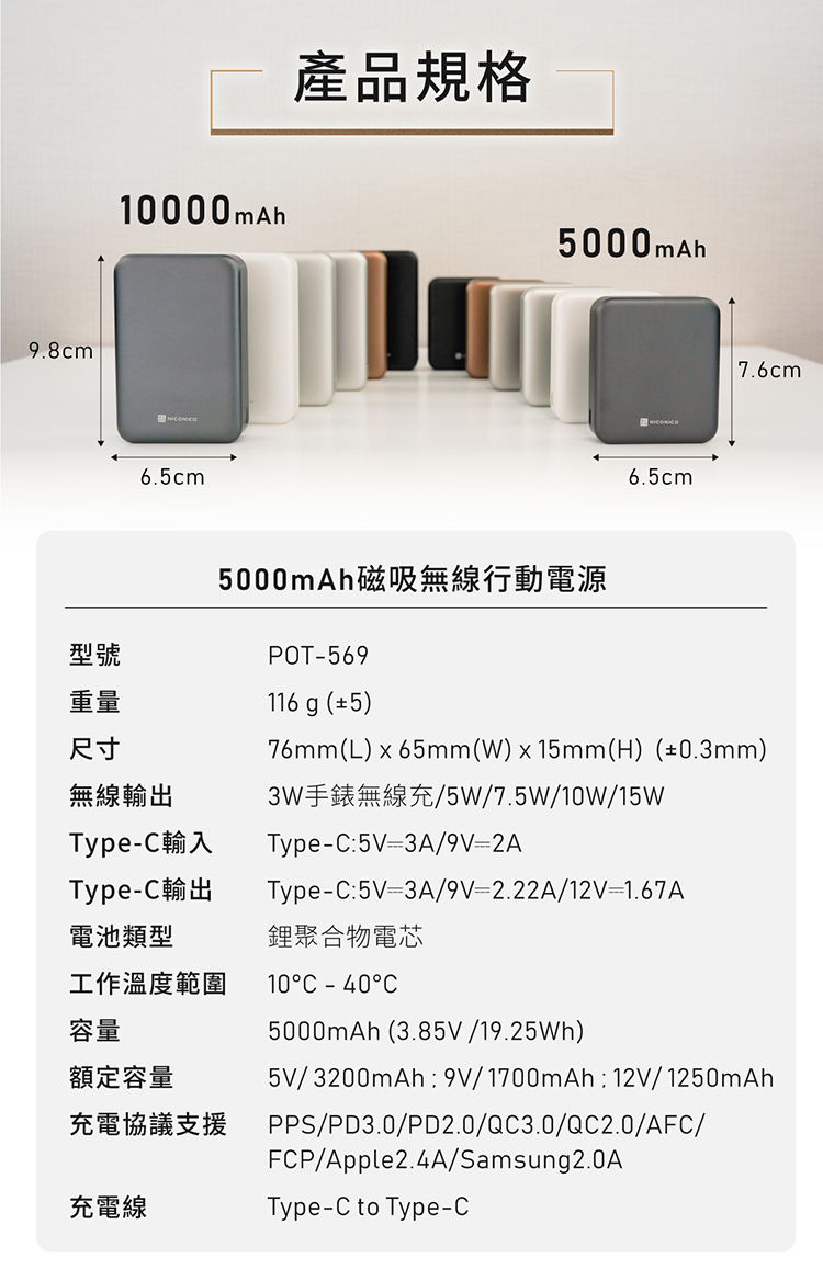 多口輸出:無線充:5W+Type-C: 5V☆2A