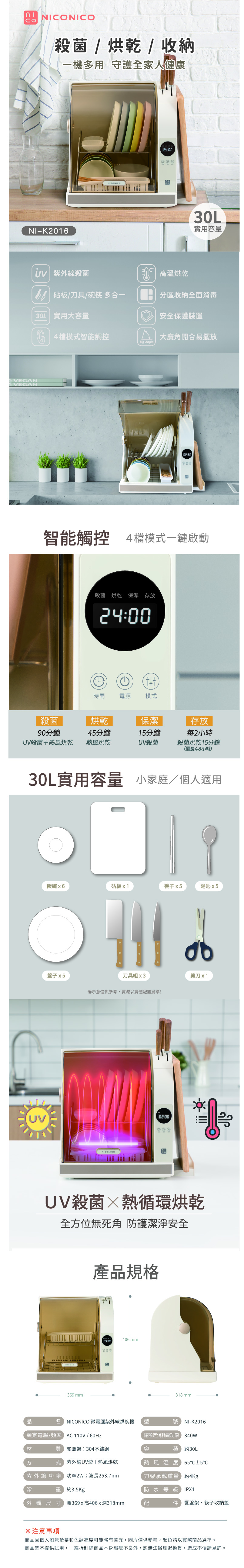 日本 NICONICO 微電腦紫外線烘碗機 NI-K2016