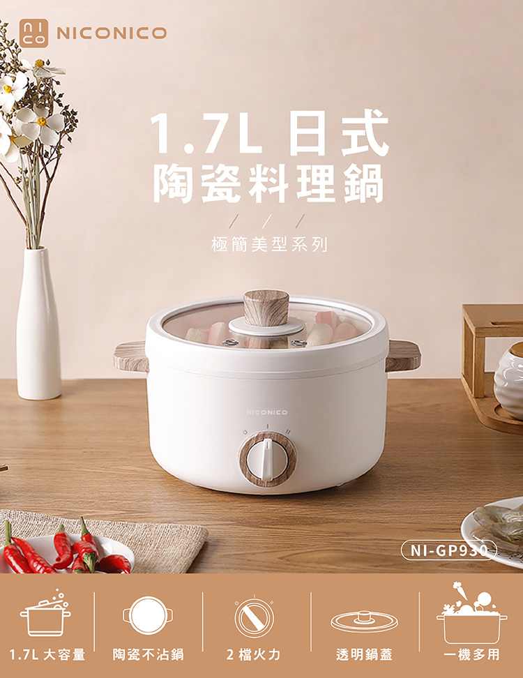 日本 NICONICO 陶瓷料理鍋 奶油鍋系列 1.7L日式陶瓷料理鍋 陶瓷鍋 NI-GP930