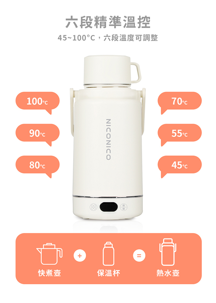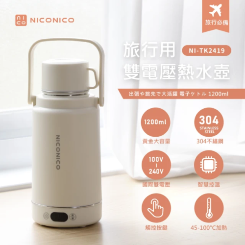 日本 NICONICO 熱水壺 旅行用雙電壓熱水壺 快煮壺 電熱水杯 保溫杯 加熱杯 快煮杯 NI-TK2419