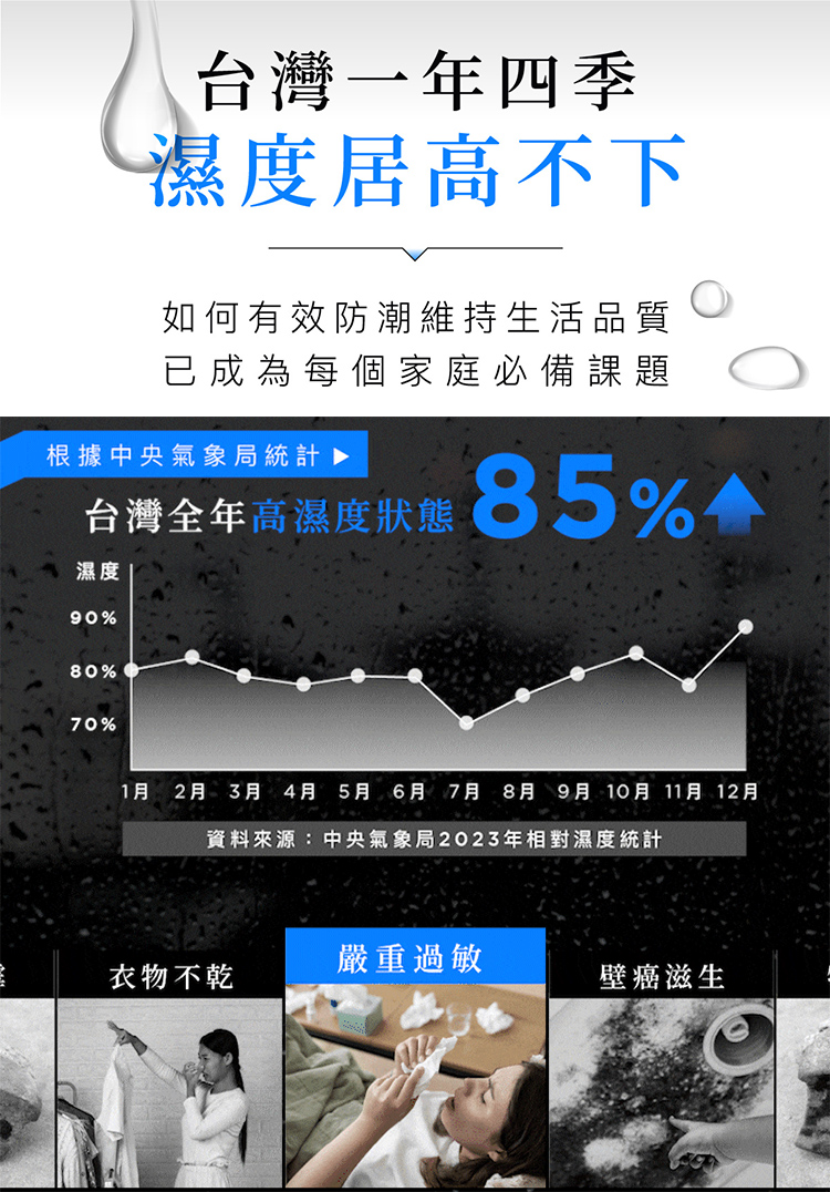 額定除濕:450ML/D (30°Cㆍ80%RH)