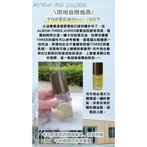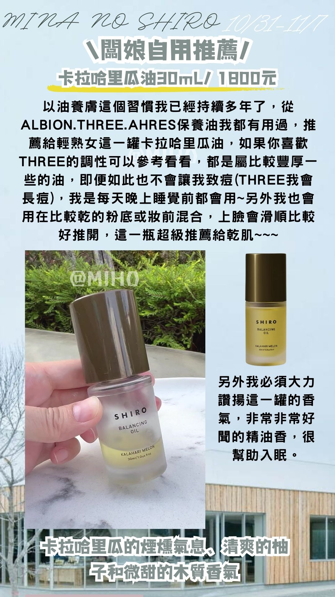 【8月北海道連線】SHIRO ♡ 卡拉哈里瓜油30mL 日本美妝▕ Miho美好選