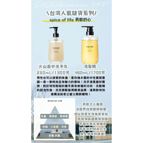 【8月北海道連線】SHIRO ♡ SPICE OF LIFE 勇敢之心 洗手液 洗髮精 日本美妝▕ Miho美好選品