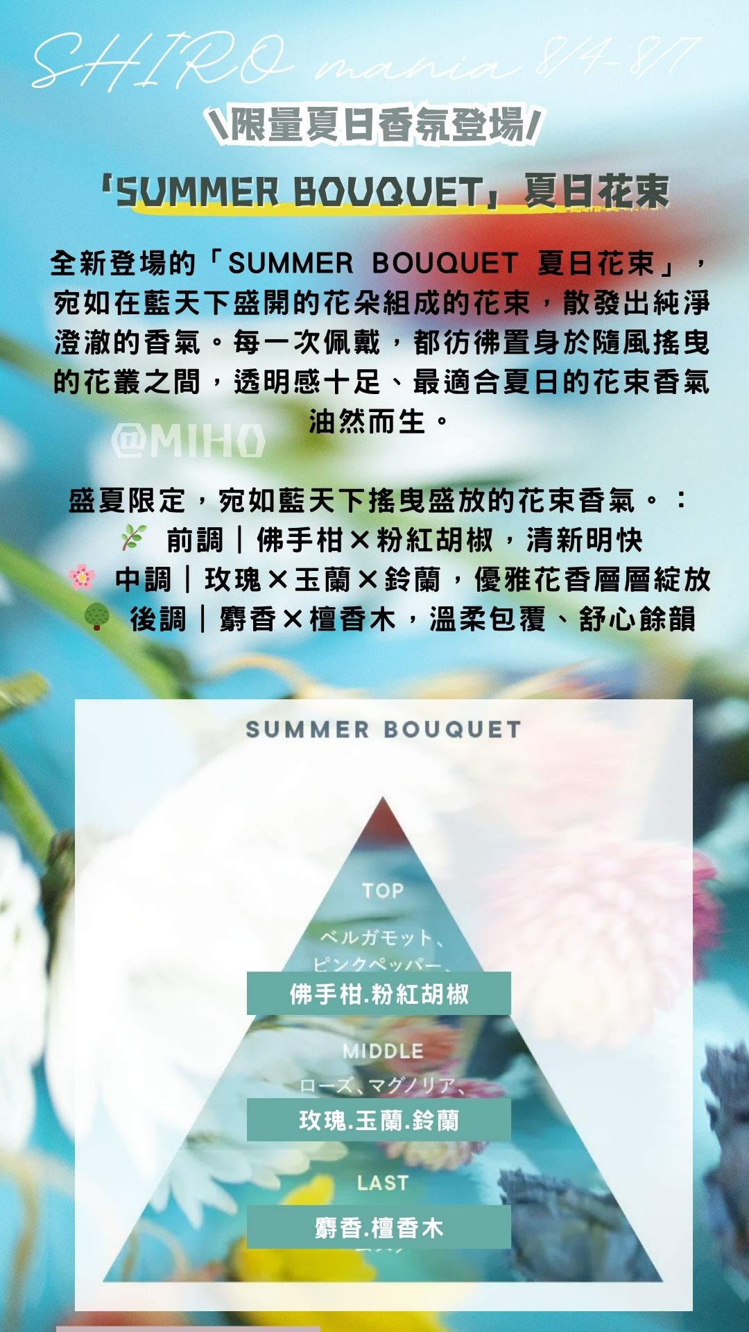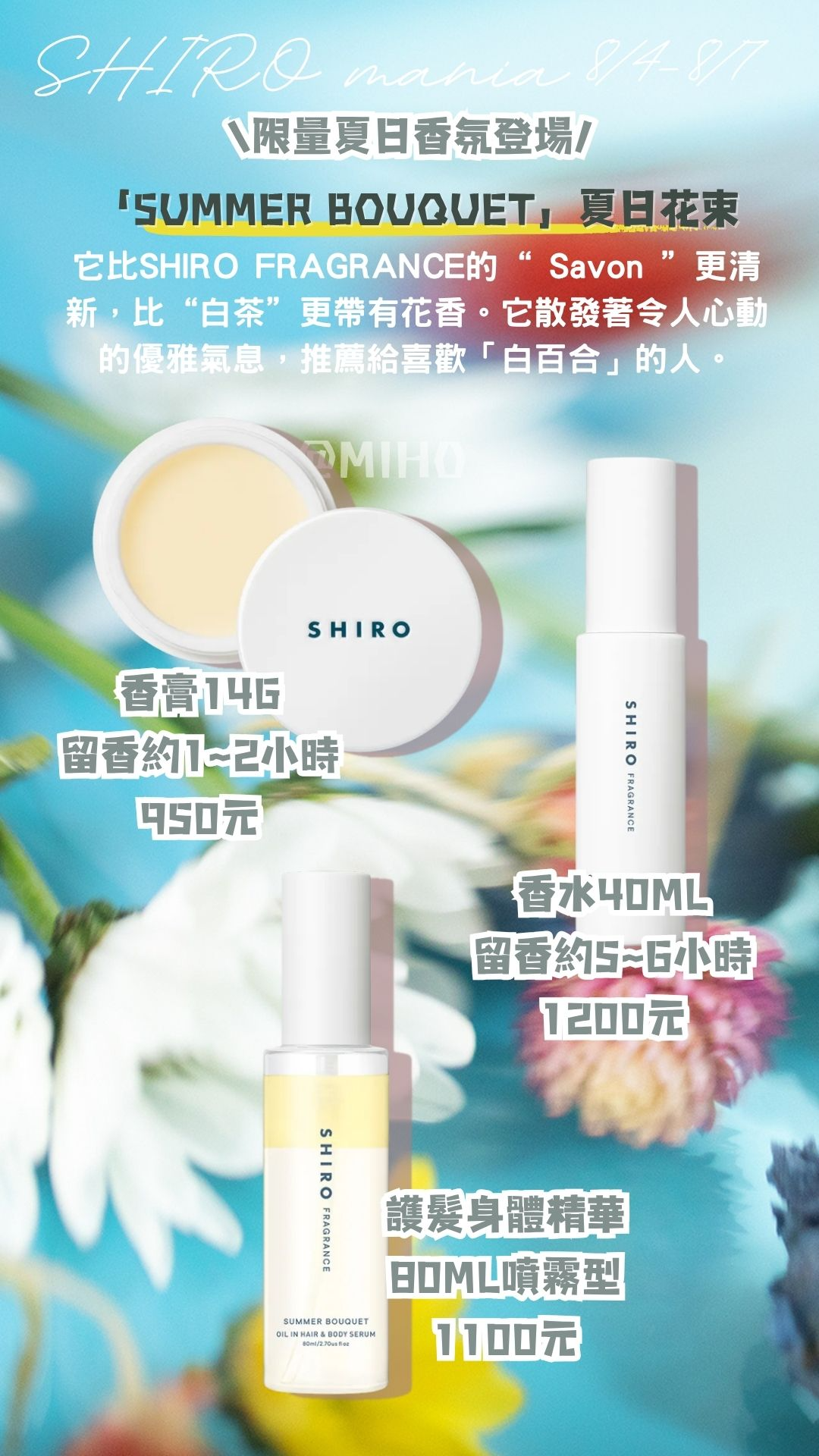 【8月北海道連線】SHIRO ♡ 夏日花束 香水 香膏 淡香水 護髮身體噴霧 護髮 日本美妝▕ Miho美好選品