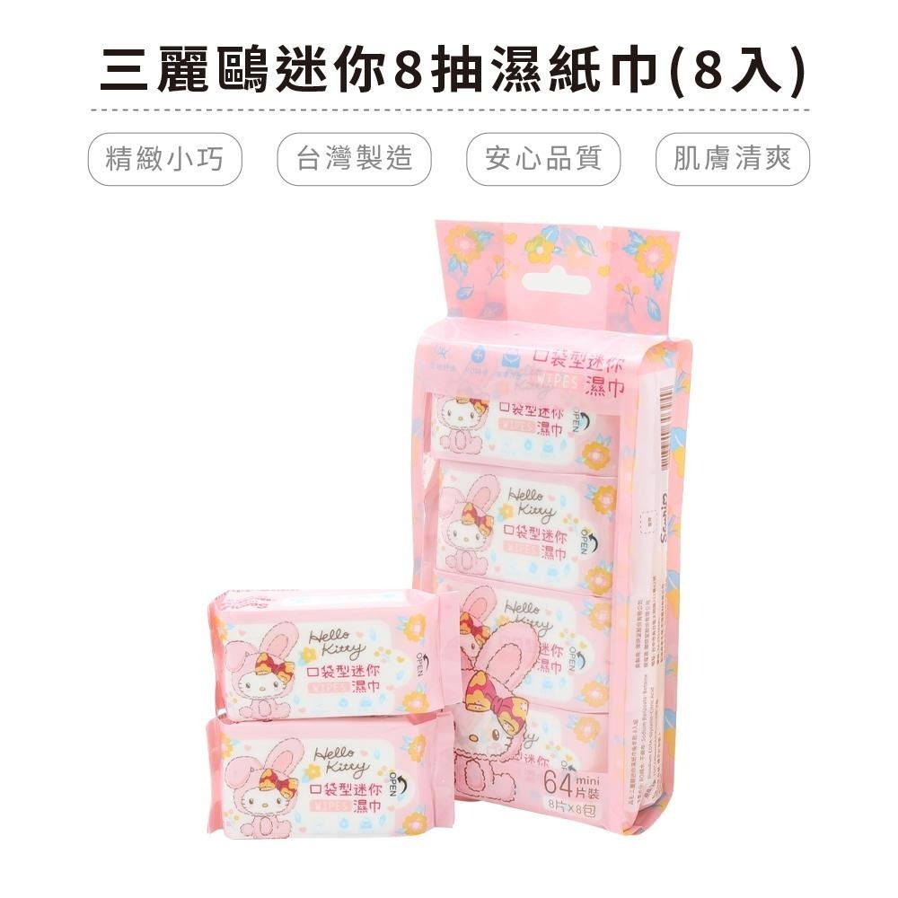 三麗鷗 Hello Kitty 兔年迷你柔膚濕紙巾 8抽(八包) 純水濕紙巾 RO純水 台灣製【5ip8】KT0194