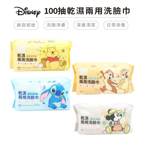 迪士尼 Disney 乾濕兩用巾 100抽 洗臉巾 擦臉巾 史迪奇 小熊維尼 奇奇蒂蒂 米奇【5ip8】DN0475