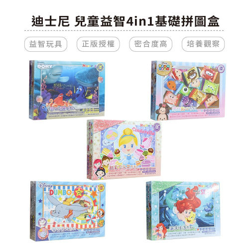 迪士尼 兒童益智4in1基礎拼圖手提盒 益智拼圖 益智遊戲 兒童拼圖 正版授權HP0009