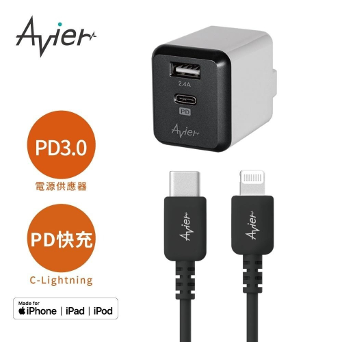 【Avier】Lightning 快充 充電組 30W 充電器 + Lighnting 2M - 多色