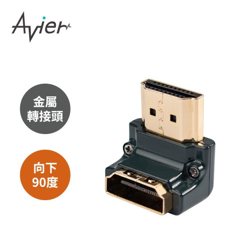 【Avier】PREMIUM 全金屬 轉接頭 HDMI A 公 轉 母 - 向下90度