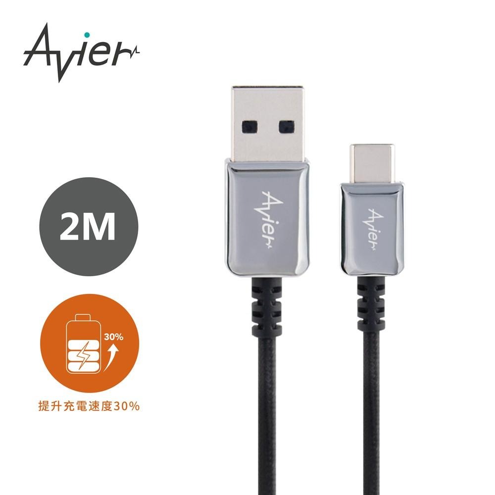 【Avier】CLASSIC USB A to Type-C 編織高速充電傳輸線 2M - 鋒芒銀