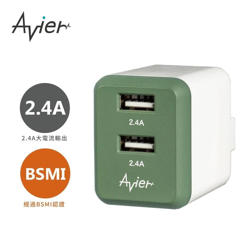 【Avier】COLOR MIX 4.8A USB 24W 雙孔 充電器 - 軍綠
