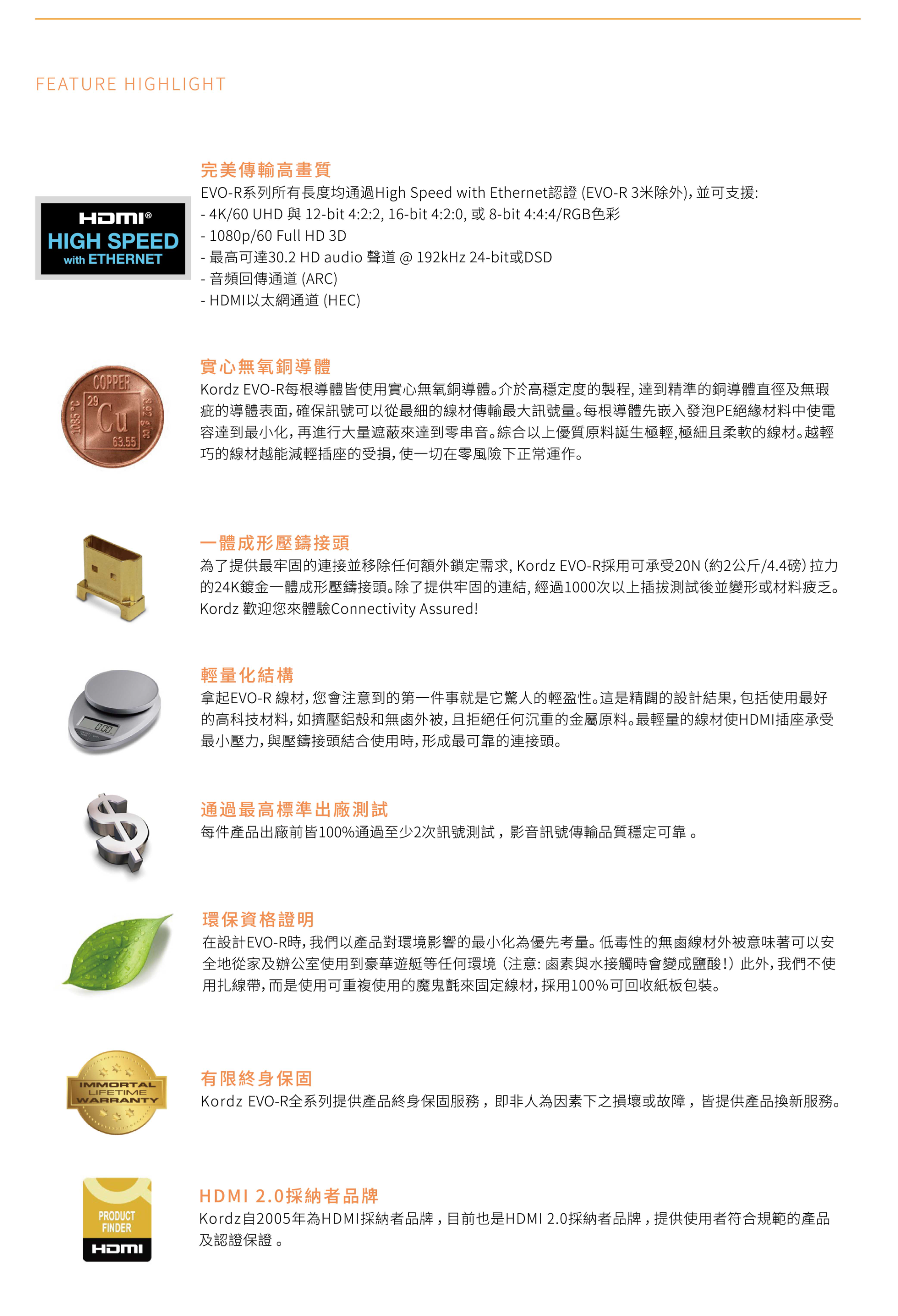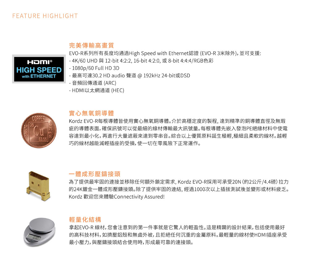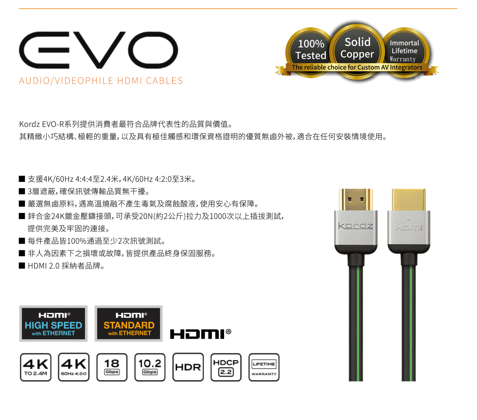 【Kordz】EVO 高速影音 HDMI 傳輸線 0.6M - 3M