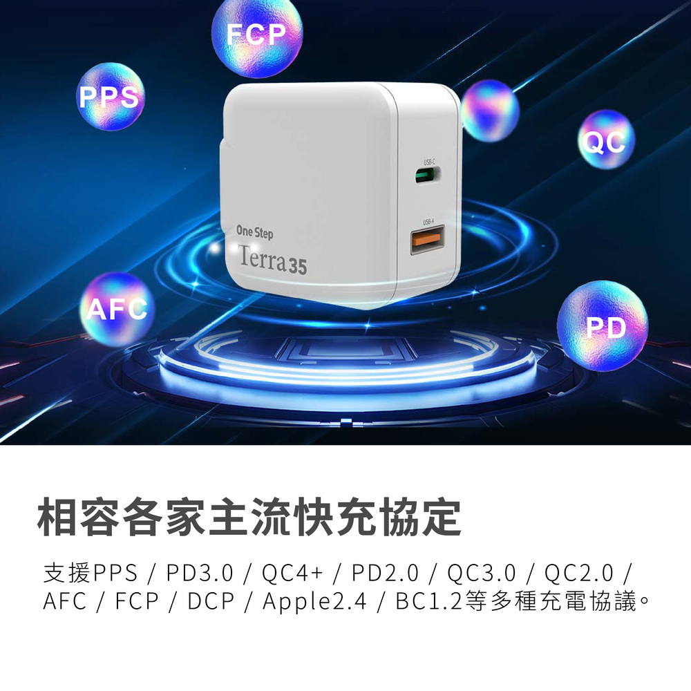 為了朝節能減碳的目標邁進,共同為環境盡一份心力,One Step Terra35 導入近100%的PCR原料,探用最新氮化鎵技術,最高35W的大功率設定,能夠為多種裝置提供快速充電,提供兼具效率的絕佳體驗。
