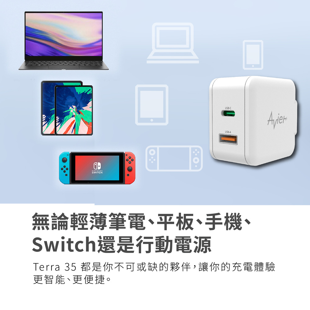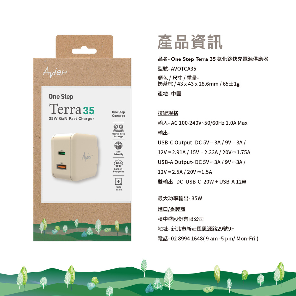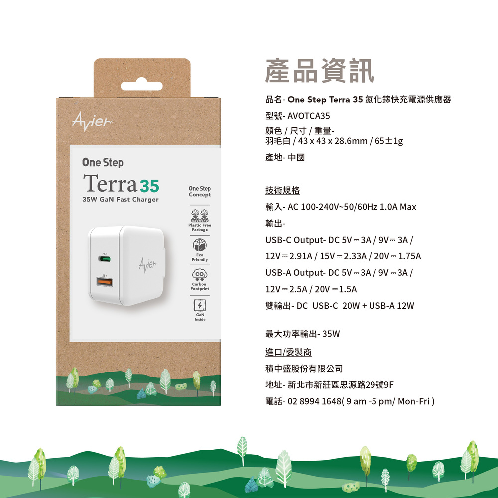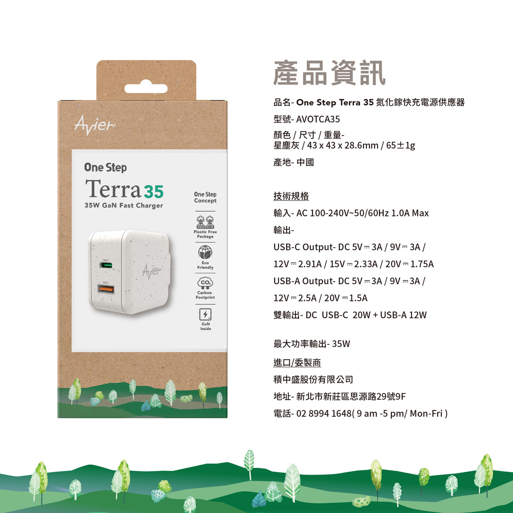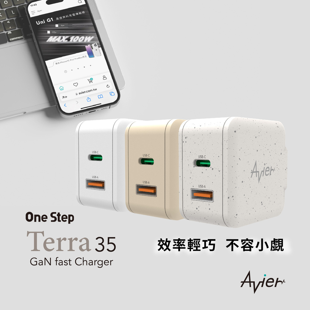 【Avier】One Step Terra 35W 雙孔 氮化鎵 環保 快充頭 充電器