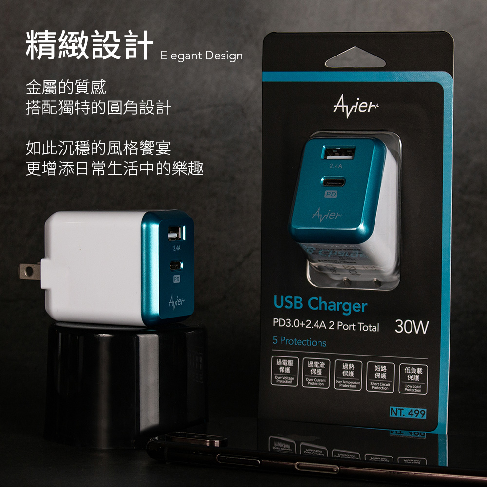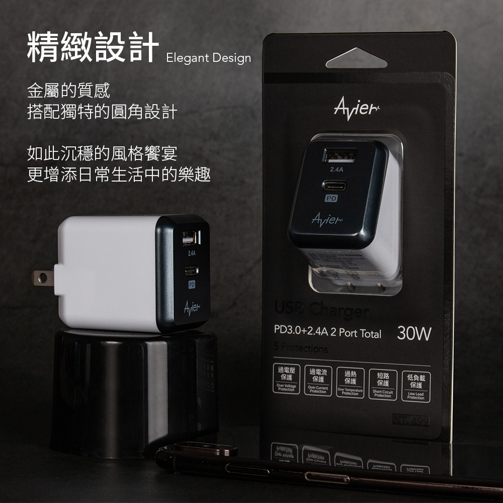 【Avier福利品】COLOR MIX PD 30W 雙孔 充電器 充電頭 快充頭