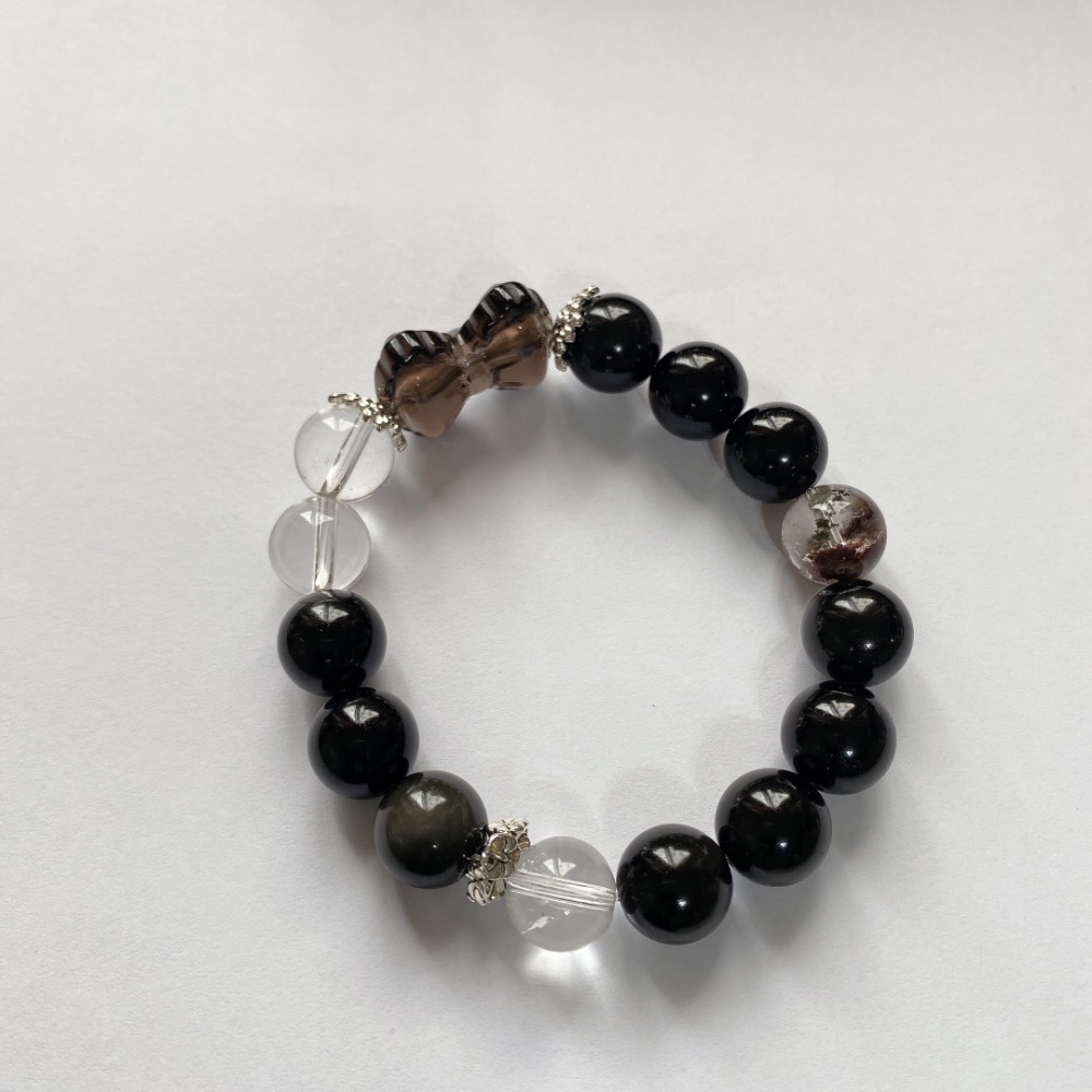 人工量測偶有錯漏請多包涵,曜石有彩曜和銀曜,彩曜打燈會有一線貓眼效應,蝴蝶結是冰曜石,尺寸23x17x10mm。