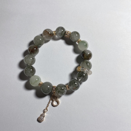 跑環是白水晶x髮晶,帶一個葫蘆造型的沙金配飾,人工量測偶有錯漏請多加包涵,部分照片中的擺設、裝飾僅為拍攝展示,未包含在實際販售內容。