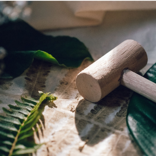1.植物敲拓染是草木染最簡單的一種染布方式。