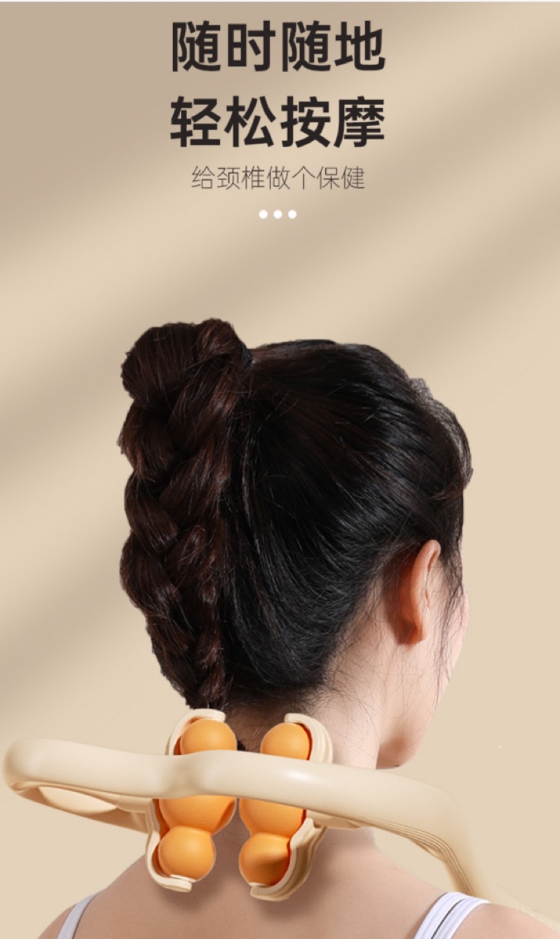 藍色升級版8球頸椎按摩器/揉捏脖子按摩器/手動夾脖子/夾頸器