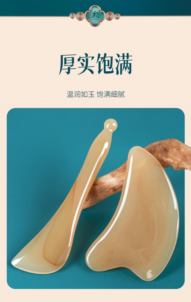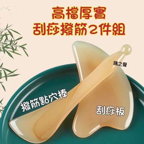 高檔厚實刮痧板撥筋棒2件組送精油10ml和收納袋/高端樹脂材質晶瑩剔透