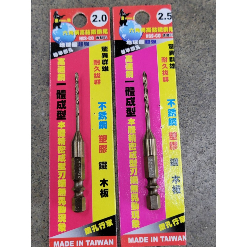 ●特殊材質製造,HSS-Co M35含 鈷鑽頭,適用於各類金屬、白 鐵、不鏽鋼...等。