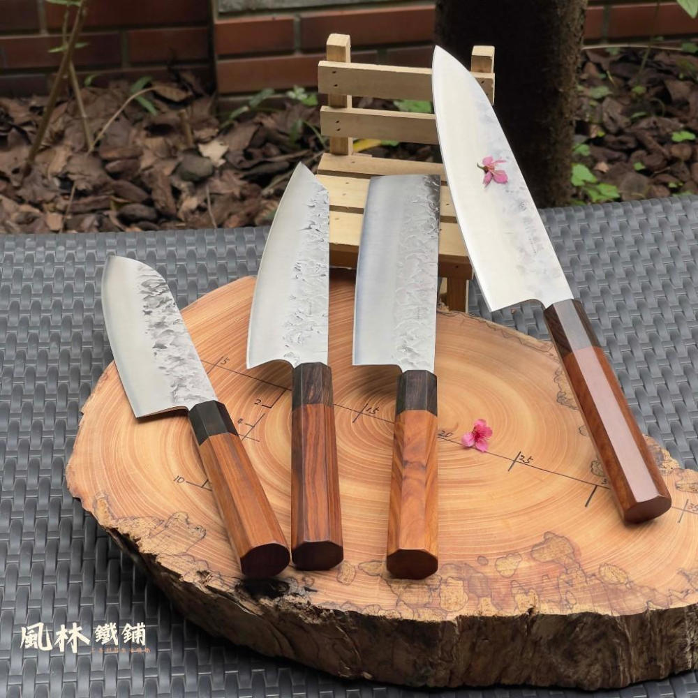 歡迎貴客蒞臨  風林鐵鋪刀工場 【商品特色介紹】 鉬釩鋼鍛打錘紋日式八角柄黑檀廚刀組 一組有4刀 有:主廚刀、小菜刀、切肉刀(生魚片刀)、三德刀(萬用刀),用50Cr15Mov鉬釩鋼材焠火鍛製而成刀刃堅硬鋒利,日式八角柄 刀柄好握,鍛打錘紋外型美觀,一組有4刀可單獨購買,整組採購更顯專業,歡迎選購。 【使用說明與注意事項】 ★收到商品若有缺件或瑕疵歡迎用聊聊反應我們會盡速處理。 💖我們的刀都已開鋒,刀刃非常鋒利,拆開包裝取出時請務必小心 ! 使用過程也請一定要小心,若使用不當受傷或不正當的用途後果需要自負! ★拿到新刀宜用溫水燙過或用中性洗碗精洗過擦拭乾淨再使用為佳。 👉若有較長時間不使用時,可擦乾後上一層植物油後收納可常保如新。 👉不鏽鋼可減少刀刃生鏽的機率,並非完全不會生鏽,使用後請擦乾保存。 ★不應將其浸入或暴露於強酸或強鹼中。 ★最佳的收納是在使用後立即清洗並擦乾。 👉不使用時請將本品放在兒童不能接觸的地方。 【商品規格】 ★產品尺寸為手工測量,可能存在誤差敬請見諒! ★產品顏色因環境光線、電腦螢幕顯示有所差異,依實際產品為主。 編號:FK1-6066 品名:不鏽碳鋼鍛打錘紋日式八角柄黑檀主廚刀 https://s-cf-tw.shopeesz.com/file/tw-11134208-7r98x-lr7gs79kfrwobe 刀長:362mm 重量:213g 刃長:213mm 刃寬:50mm 刃厚:2mm 編號:FK3-6067 品名:不鏽碳鋼鍛打錘紋日式八角柄黑檀小菜刀 https://s-cf-tw.shopeesz.com/file/tw-11134208-7r98q-lr7gs79kh6h40f 刀長:337mm 重量:233g 刃長:185mm 刃寬:50mm 刃厚:2mm 編號:FK6-8068 品名:不鏽碳鋼鍛打錘紋日式八角柄黑檀切肉刀(生魚片刀) https://s-cf-tw.shopeesz.com/file/tw-11134208-7r98o-lr7gs79kil1k13 刀長:350mm 重量:213g 刃長:50mm 刃寬:210mm 刃厚:2mm 編號:FS1-6069 品名:不鏽碳鋼鍛打錘紋日式八角柄黑檀三德刀(萬用刀) https://s-cf-tw.shopeesz.com/file/tw-11134208-7r98w-lr7gs79kjzm0ba 刀長:336mm 重量:205g 刃長:185mm 刃寬:50mm 刃厚:2mm 【出貨說明】🚚目前 全家或是7-11 的寄送速度比較快🚚 本賣場商品均為台灣現貨,下單後24小時內出貨⚡上班期間每天出貨,假日或急單需求請留言通知。 若您有比較大量的購買或批發需求,可來聊聊留言,提供您需要的商品及數量以及您詳細的聯繫資訊,後續將會有專人與您聯繫。 🚚貨品寄送過程難免發生包裝擠壓或變形敬請見諒。若商品本身有瑕疵,缺件或發錯件煩請聊聊留言通知,將盡速為您處理均可退換請您安心購買。 🚚選擇貨到店付款的買家們,蝦皮新規包裹到達門市後需在5天以內取貨,麻煩買家們要記得及時取件喔! 🚚本鋪商品均為現貨,若遇進貨不及缺貨的情況,會第一時間聯繫買家,徵求買家同意延長出貨時間或換產品出貨! 📌下單前請選擇正確的地址與取件門市,訂單成立後無法修改地址與門市。 📌如果有取消訂單之需求,可以在賣家申請單號前自行取消。 ⚠️發票申請尚在規劃中,目前尚無開發票,下單前請注意並請見諒。 【商品及售後服務】 💖拆封後請先確認「商品有無問題」本鋪商品不滿意保證退換,請放心選購! ⚠退貨:鑑賞期非試用期,新品不良保證退換,若非新品不良退貨因素請用聊聊溝通,小鋪以客為尊。 ⚠換貨:新品不良需換貨時,請保持商品主體、外盒及配件完整無刮傷損壞及贈品完整。 ⚠產品異常或有瑕疵毀損,請拍商品照片以「聊聊」向客服人員反應我們會馬上為您處理。 ⚠為保障您的權益,建議外箱可以保留至確認購買商品皆沒問題再自行處理! 💖保固:收到商品如發現有瑕疵,或在保固期間內,只要非人為因素損害,都可提供免費換新。 📌退換貨需保持商品、包裝、贈品之全新狀態與完整性。 💖喜歡我們商品與服務,歡迎給我們滿滿★★★★★五星好評哦!感謝您 💖! 🔥商品持續上新,歡迎追蹤 +關注!