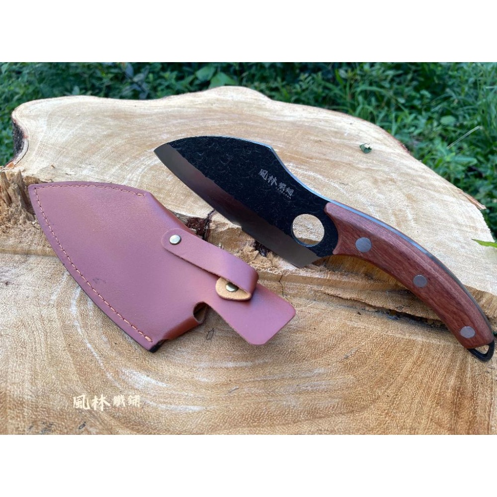 【小巴花黄柄切片刀】附皮套 可以當切片刀屠宰切削肉剔骨刀分割肉刀小菜刀,不銹鋼戶外木柄小彎刀手工鍛打錘紋,刀刃開一圓孔刀型特別用途廣方便好用,歡迎選購。