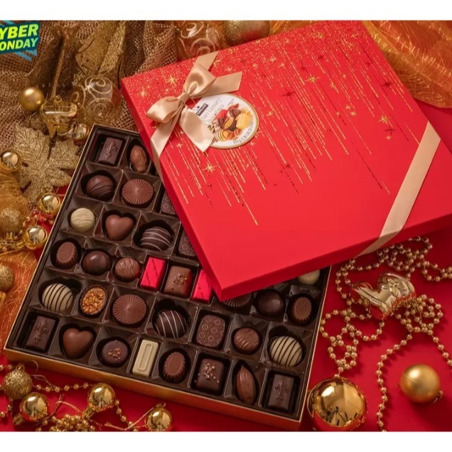 成分 【咖啡奶油黑巧克力】(15公克×3份)黑巧克力[無糖巧克力(可可塊),糖,奶油脂,可可脂,大豆卵磷脂,香草香料],白巧克力(糖,可可脂,奶粉,大豆卵磷脂,香草香料),糖,奶油,牛油樹油,椰子油脂,D-山梨醇,葡萄糖糖漿,水,咖啡(即溶咖啡粉),葡萄糖,葵花籽油,鹽 【焦糖杏仁榛果巧克力】(12公克×2份)黑巧克力[無糖巧克力(可可塊),糖,奶油脂,可可脂,大豆卵磷脂,香草香料],糖,榛果,脫脂奶粉,烤杏仁,牛油樹油,葵花籽油,椰子油脂,減脂可可粉,葵花籽卵磷脂,焦糖(糖,水) 【心型榛果牛奶巧克力】(14公克×4份)牛奶巧克力[糖,奶粉,無糖巧克力(可可塊),可可脂,大豆卵磷脂,香草香料],糖,椰子油脂,牛油樹油,葵花籽油,烤榛果,減脂可可粉,牛軋糖(糖,葡萄糖糖漿,杏仁,蜂蜜,可可脂,馬鈴薯澱粉,雞蛋白,香草香料),香辛料(薑粉),大豆卵磷脂 【開心果威化餅牛奶巧克力】(10公克×2份)牛奶巧克力(糖,可可脂,奶粉,大豆卵磷脂,香草香料),椰子油脂,威化餅(小麥粉,糖,奶油,雞蛋,小麥澱粉,鹽,碳酸銨),糖,開心果,牛油樹油,葵花籽油,大豆卵磷脂,鹽,開心果餅乾香料 【提拉米蘇風味巧克力】(9公克×3份)牛奶巧克力[糖,奶粉,無糖巧克力(可可塊),可可脂,大豆卵磷脂,香草香料],糖,葵花籽油,椰子油,牛油樹油,烤榛果,減脂可可粉,碎餅乾(小麥粉,糖,奶油,鹽),提拉米蘇香料,大豆卵磷脂 【柚子檸檬白巧克力】(9公克×2份)白巧克力(糖,可可脂,奶粉,大豆卵磷脂,香草香料),黑巧克力[無糖巧克力(可可塊),糖,奶油脂,可可脂,大豆卵磷脂,香草香料],蘋果泥,轉化糖漿(果糖,葡萄糖,蔗糖),甘油,香檸檬泥,D-山梨醇,檸檬,葡萄糖糖漿,牛油樹油,乳脂,椰子油脂,柚子泥,葵花籽油,脫脂牛奶,香料(柚子香料,香檸檬香料),水,檸檬酸 【草莓巧克力】(15公克×4份)黑巧克力[無糖巧克力(可可塊),糖,奶油脂,可可脂,大豆卵磷脂,香草香料],糖,草莓醬[高果糖玉米糖漿,草莓,糖,果膠(蘋果、柑橘),檸檬酸], D-山梨醇,甘油,轉化糖漿(果糖,葡萄糖,蔗糖),葡萄糖糖漿,水,白巧克力(糖,可可脂,奶粉,大豆卵磷脂,香草香料),牛油樹油,椰子油脂,草莓,葵花籽油,草莓香料,檸檬酸 【古典布朗尼巧克力】(15公克×3份)牛奶巧克力[糖,奶粉,無糖巧克力(可可塊),可可脂,大豆卵磷脂,香草香料],黑巧克力[無糖巧克力(可可塊),糖,奶油脂,可可脂,大豆卵磷脂,香草香料],甘油,椰子油脂,牛油樹油,可可布朗尼(糖,雞蛋,油菜籽油,小麥粉,可可塊,脫脂可可粉,甘油,奶油脂,脂肪酸甘油酯,鹽,可可脂,香料,大豆卵磷脂),葡萄糖糖漿,D-山梨醇,乳脂,脫脂牛奶,可可脂,無糖巧克力(可可塊),減脂可可粉,糖,葵花籽卵磷脂 【香草慕斯白巧克力】(15公克×3份)白巧克力(糖,可可脂,奶粉,大豆卵磷脂,香草香料),奶油,糖,葡萄糖,牛油樹油,椰子油脂,甘油,黑巧克力[無糖巧克力(可可塊),糖,奶油脂,可可脂,大豆卵磷脂,香草香料],葡萄糖糖漿,水,轉化糖漿(果糖,葡萄糖,蔗糖),D-山梨醇,葵花籽油,香草香料,香草粉,鹽 【焦糖牛奶巧克力】(14公克×4份)牛奶巧克力[糖,奶粉,無糖巧克力(可可塊),可可脂,大豆卵磷脂,香草香料],焦糖醬[葡萄糖糖漿,加糖煉乳(脫脂牛奶,糖),葡萄糖,椰子油,水,鹽,脂肪酸甘油酯,奶油香料,太妃糖香料] 【胡桃甘納許巧克力】(13公克×1份)牛奶巧克力[糖,奶粉,無糖巧克力(可可塊),可可脂,大豆卵磷脂,香草香料],黑巧克力[無糖巧克力(可可塊),糖,奶油脂,可可脂,大豆卵磷脂,香草香料],牛油樹油,椰子油脂,乳脂,甘油,D-山梨醇,葡萄糖糖漿,楓糖糖漿,胡桃,轉化糖漿(果糖,葡萄糖,蔗糖),糖,脫脂牛奶,鹽,焦糖(糖,水) 【碎可可奶油巧克力】(13公克×2份)黑巧克力[無糖巧克力(可可塊),糖,奶油脂,可可脂,大豆卵磷脂,香草香料],白巧克力(糖,可可脂,奶粉,大豆卵磷脂,香草香料),乳脂,椰子油脂,牛油樹油,可可粒,甘油,葡萄糖糖漿,D-山梨醇,糖,全脂奶粉,轉化糖漿(果糖,葡萄糖,蔗糖),可可脂,脫脂牛奶,鹽 【榛果巧克力】(11公克×2份)糖,烤榛果,可可脂,可可塊,全脂奶粉,大豆卵磷脂,香草香料,奶油脂 【豆蔻柳橙夾心巧克力】(10公克×2份)黑巧克力[無糖巧克力(可可塊),糖,奶油脂,可可脂,大豆卵磷脂,香草香料],糖,蘋果泥,轉化糖漿(果糖,葡萄糖,蔗糖),牛油樹油,椰子油脂,葵花籽油,D-山梨醇,甘油,烤榛果,柳橙泥,減脂可可粉,糖漬柳橙(柳橙皮,糖,葡萄糖果糖糖漿,檸檬酸),柳橙香料,大豆卵磷脂,香辛料(小豆蔻粉),檸檬酸 【甘納許牛奶巧克力】(9公克×3份)牛奶巧克力[糖,奶粉,無糖巧克力(可可塊),可可脂,大豆卵磷脂,香草香料],乳脂,甘油,脫脂牛奶,全脂奶粉,糖,椰子油脂,牛油樹油,玉米油,轉化酵素,檸檬酸,水 【可可豆造型牛奶巧克力】(9公克×2份)牛奶巧克力[糖,奶粉,無糖巧克力(可可塊),可可脂,大豆卵磷脂,香草香料],可可塊,奶油,黑巧克力[無糖巧克力(可可塊),糖,奶油脂,可可脂,大豆卵磷脂,香草香料],大豆卵磷脂,玉米油,柳橙香料,檸檬酸,水,葵花籽油 【焦糖黑巧克力】(9公克×2份)黑巧克力[無糖巧克力(可可塊),糖,奶油脂,可可脂,大豆卵磷脂,香草香料],焦糖[高果糖玉米糖漿,加糖煉乳(脫脂牛奶,糖),椰子油脂,水,甘油,大豆卵磷脂,鹽],牛奶巧克力[糖,奶粉,無糖巧克力(可可塊),可可脂,大豆卵磷脂,香草香料],糖漿(糖,水),葡萄糖糖漿,乳脂,奶油,脫脂牛奶,糖,鹽,可可脂,全脂奶粉,無糖巧克力(可可塊),香草香料 【慕斯黑巧克力】(15公克×2份) 黑巧克力[無糖巧克力(可可塊),糖,奶油脂,可可脂,大豆卵磷脂,香草香料],糖,無
