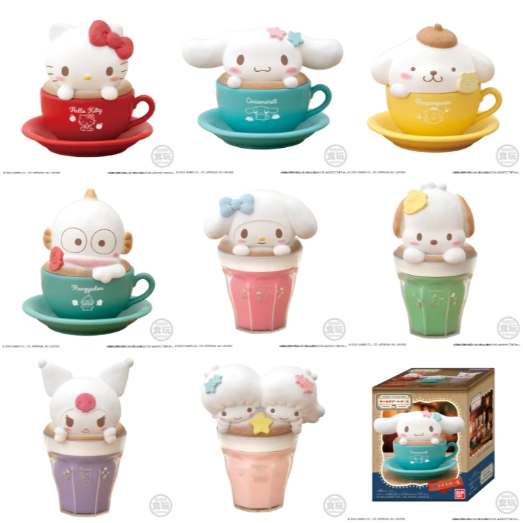 7-11同款 三麗鷗拉花公仔 三麗鷗咖啡杯 盒玩 整套8款 三麗鷗拿鐵公仔