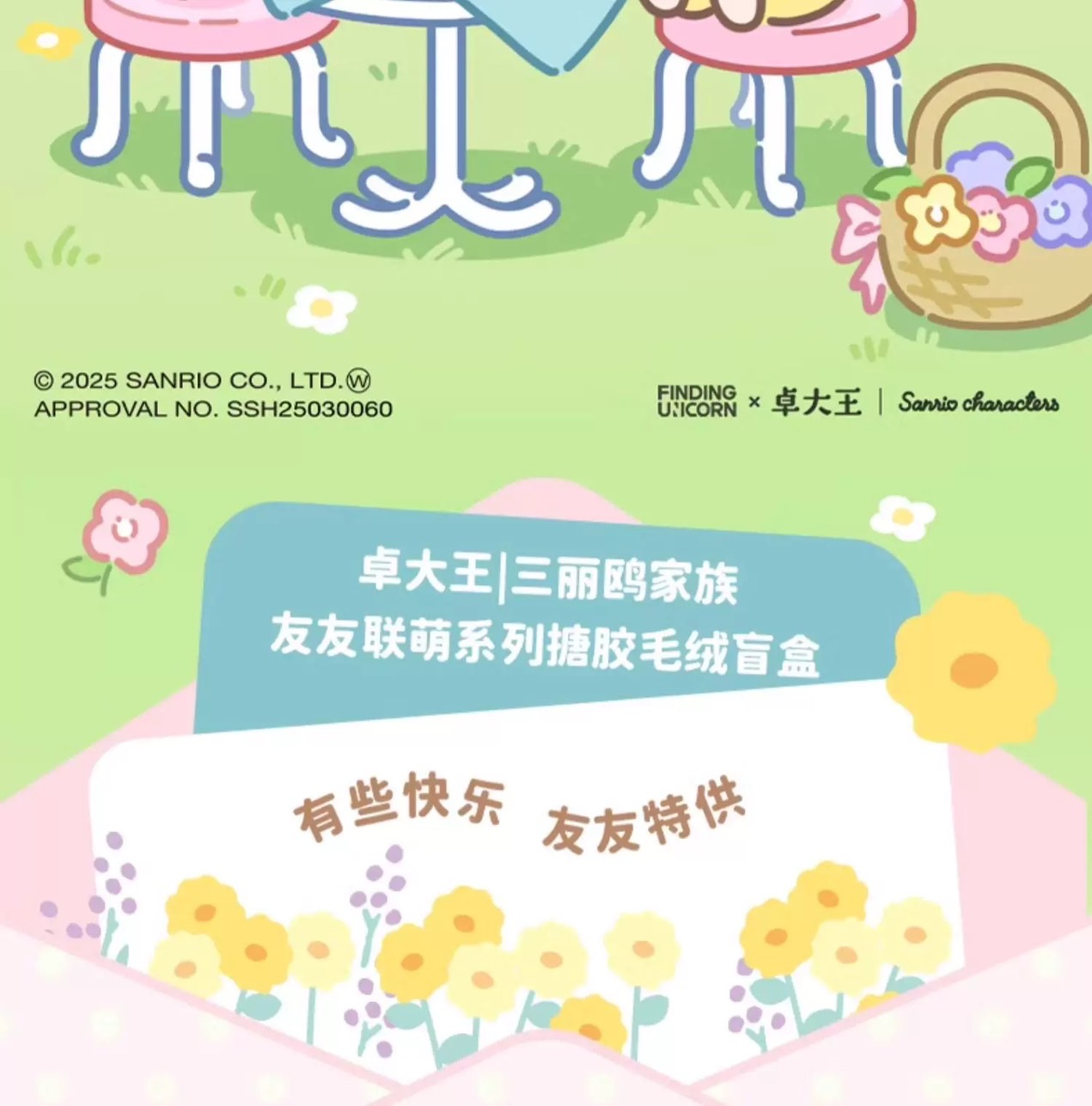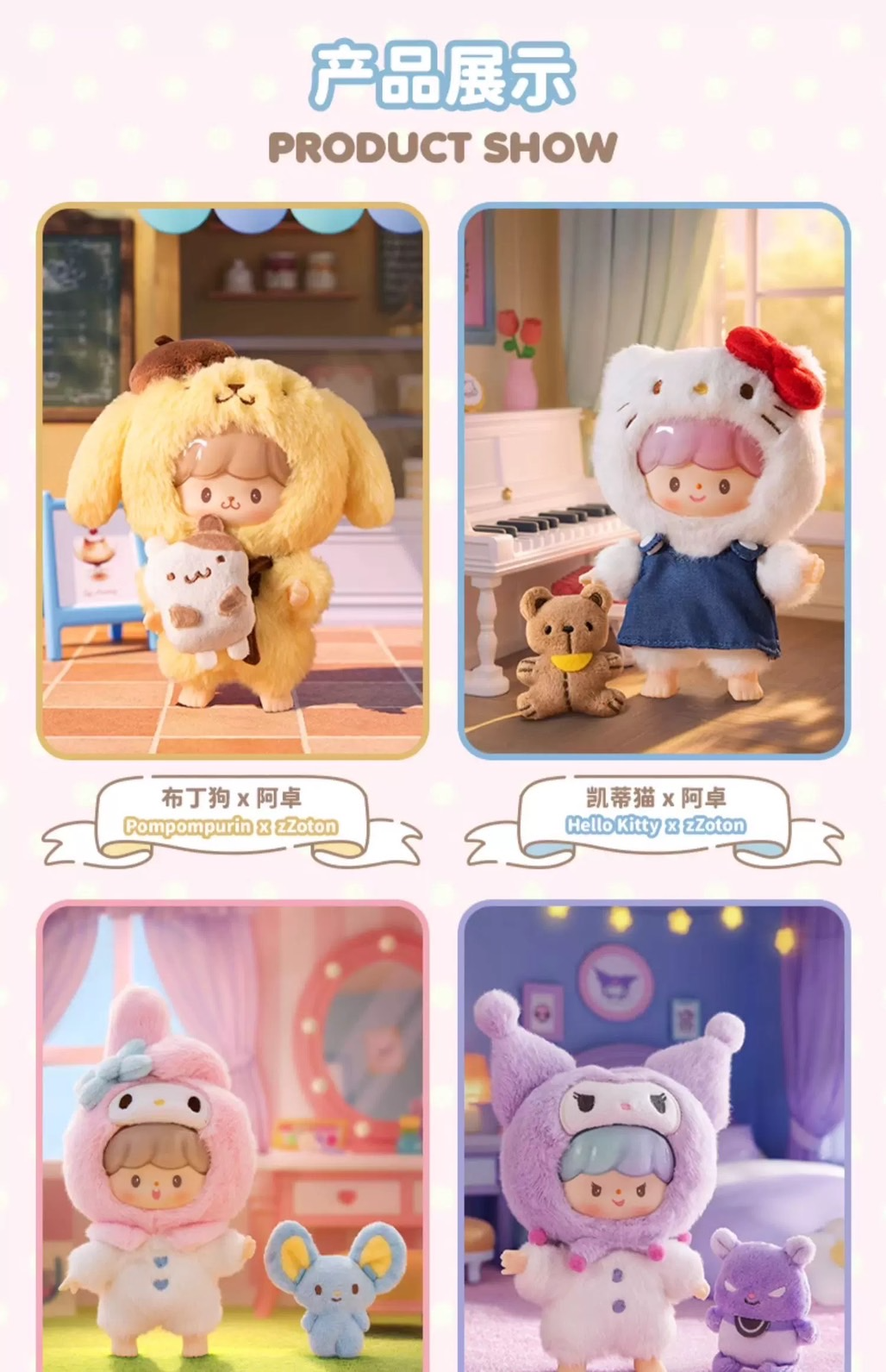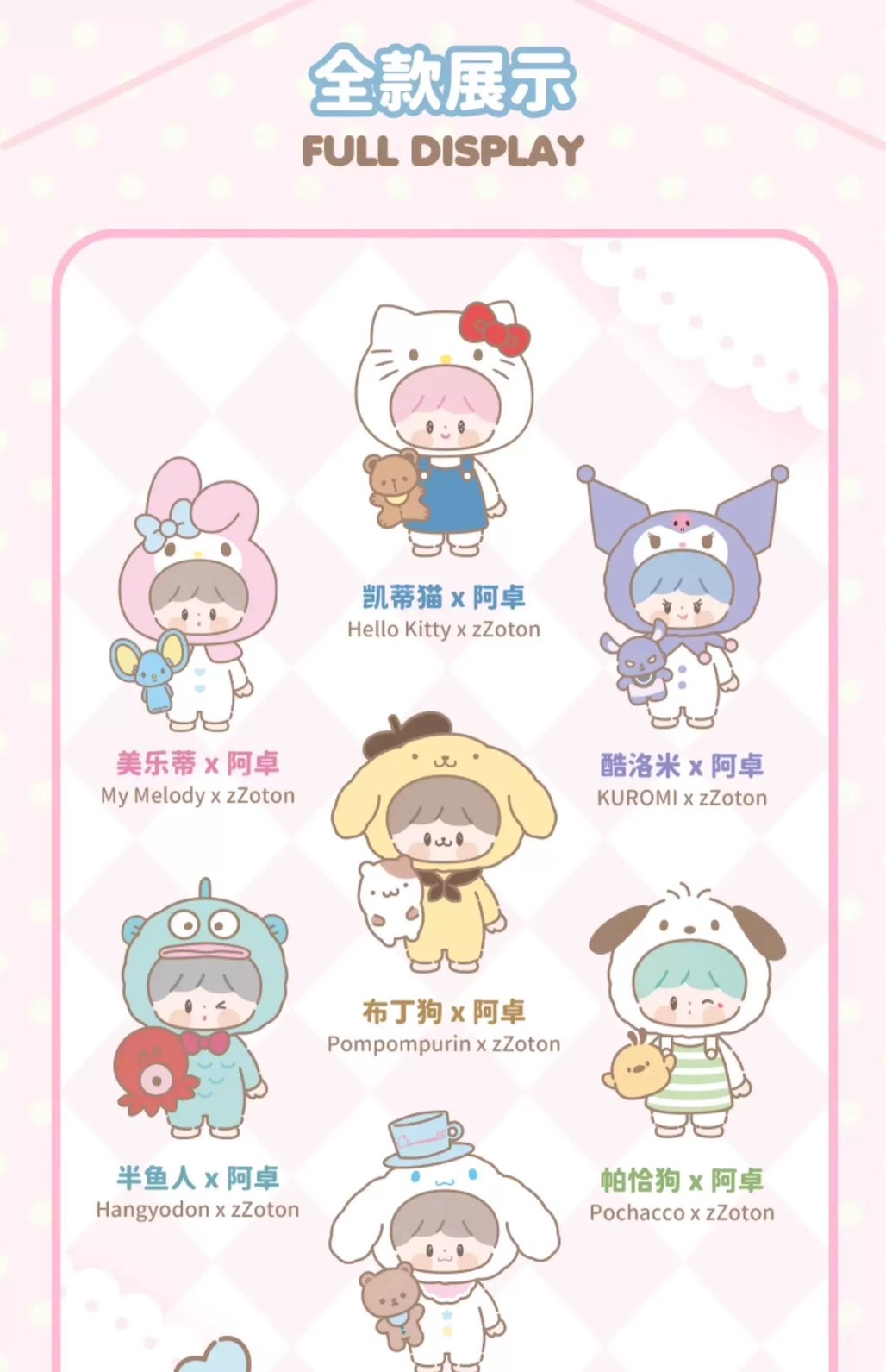 卓大王 x 三麗鷗家族 友友聯萌系列 搪膠毛絨 掛件 盲盒 吊飾 Kitty 庫洛米 醜魚 布丁狗 大耳狗 怕洽狗