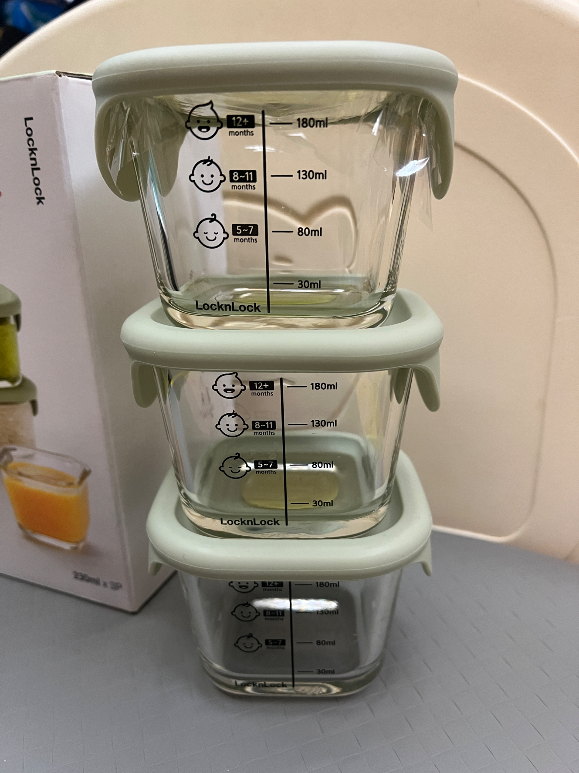 全新+二手 樂扣副食品玻璃保鮮盒180ml x 3個