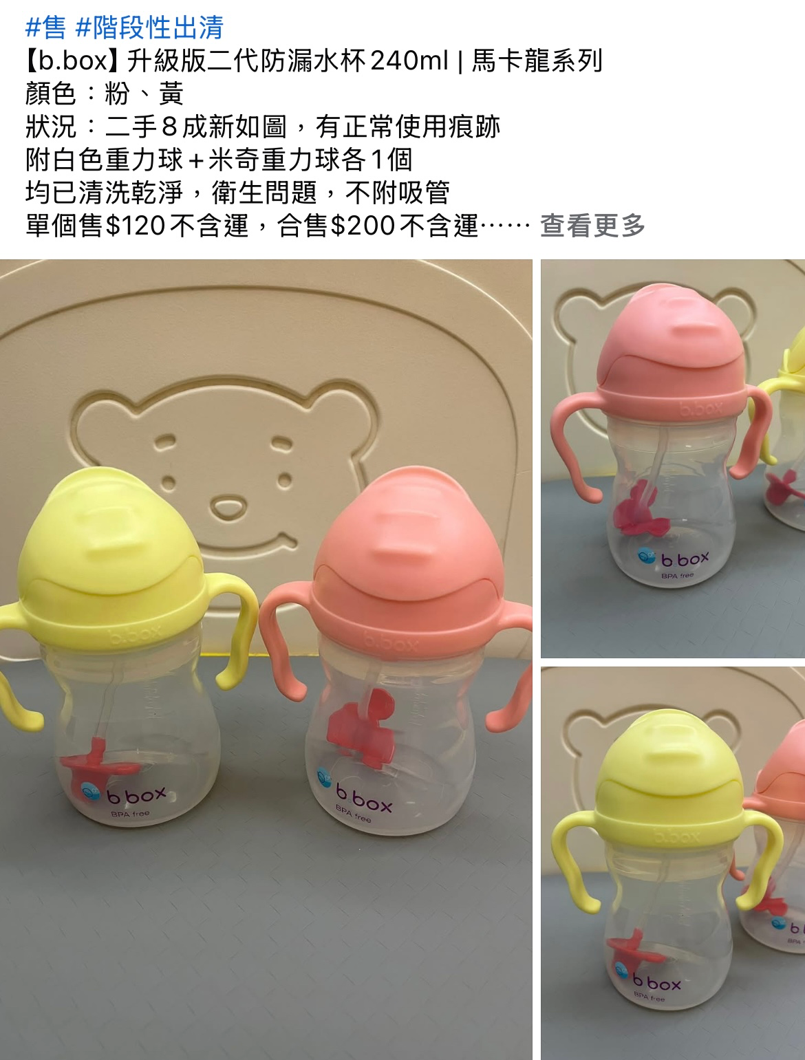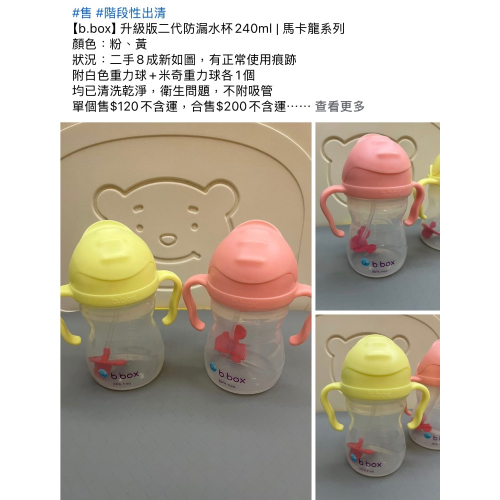 二手【b.box】升級版二代防漏水杯240ml | 馬卡龍系列(粉色、黃色)